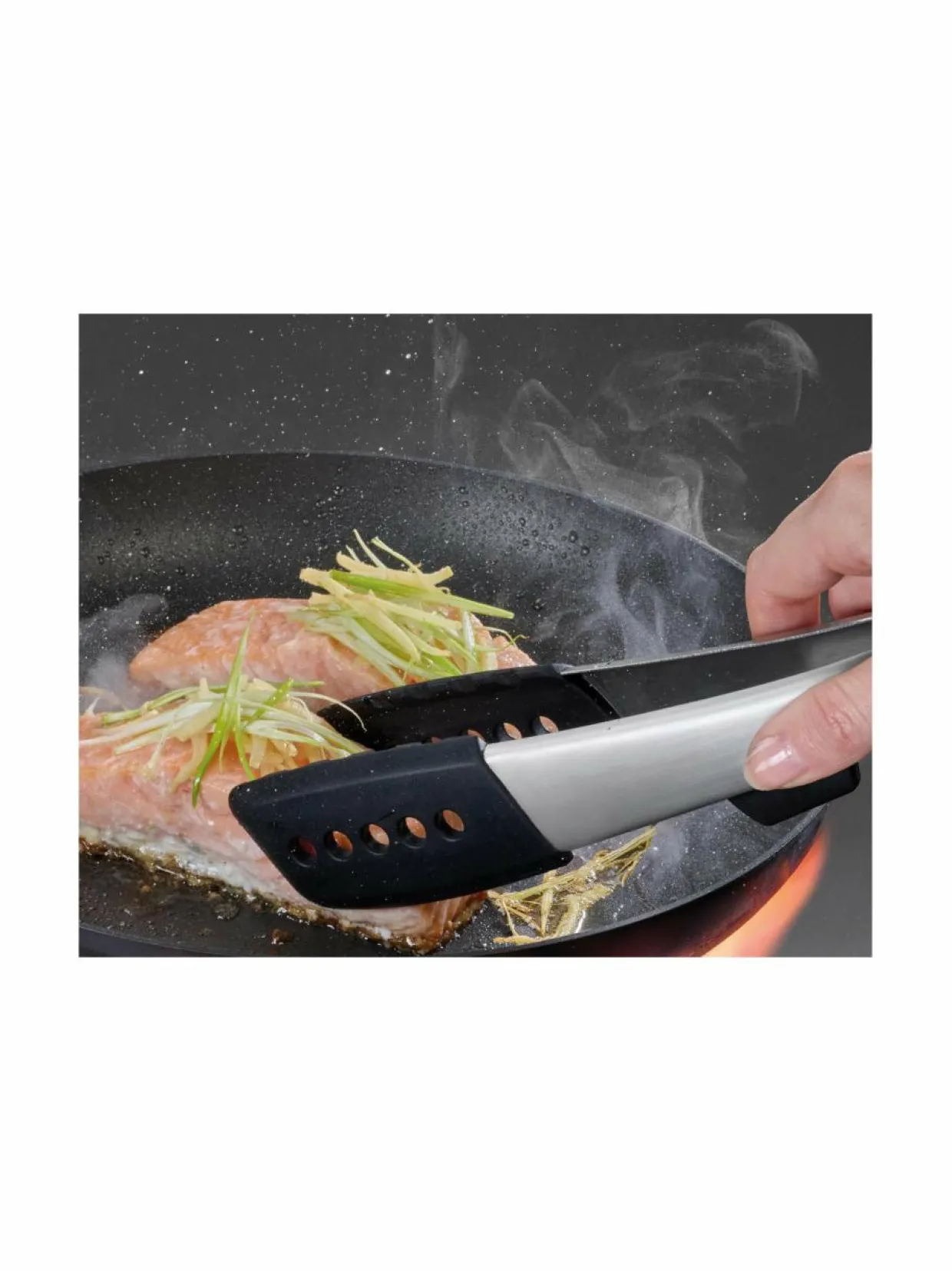 Kätevät, ruostumattomasta teräksestä valmistetut keittiöpihdit silikonisilla kärjillä. Pihtien keskiosaan on integroitu alusta, joka estää kärkiä koskettamasta työtasoa. Tämä kekseliäs lisäys parantaa hygieniaa sekä vähentää sotkuja ruoanlaiton aikana. Silikonikärjet ovat lämmönkestäviä jopa 270 ˚C asti. Pakkauksesta löydät kahdet keittiöpihdit.