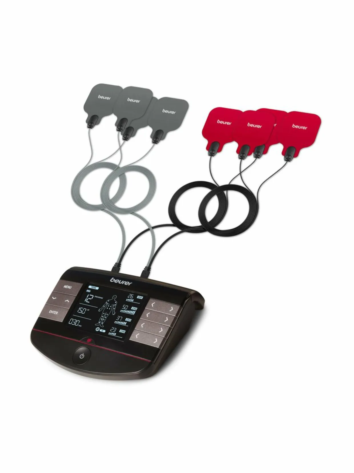 Beurerin EM 89 Heat -laitteessa yhdistyvät TENS, EMS, hieronta sekä mahdollisuus erikseen kytkettävään, miellyttävään lämpöön.