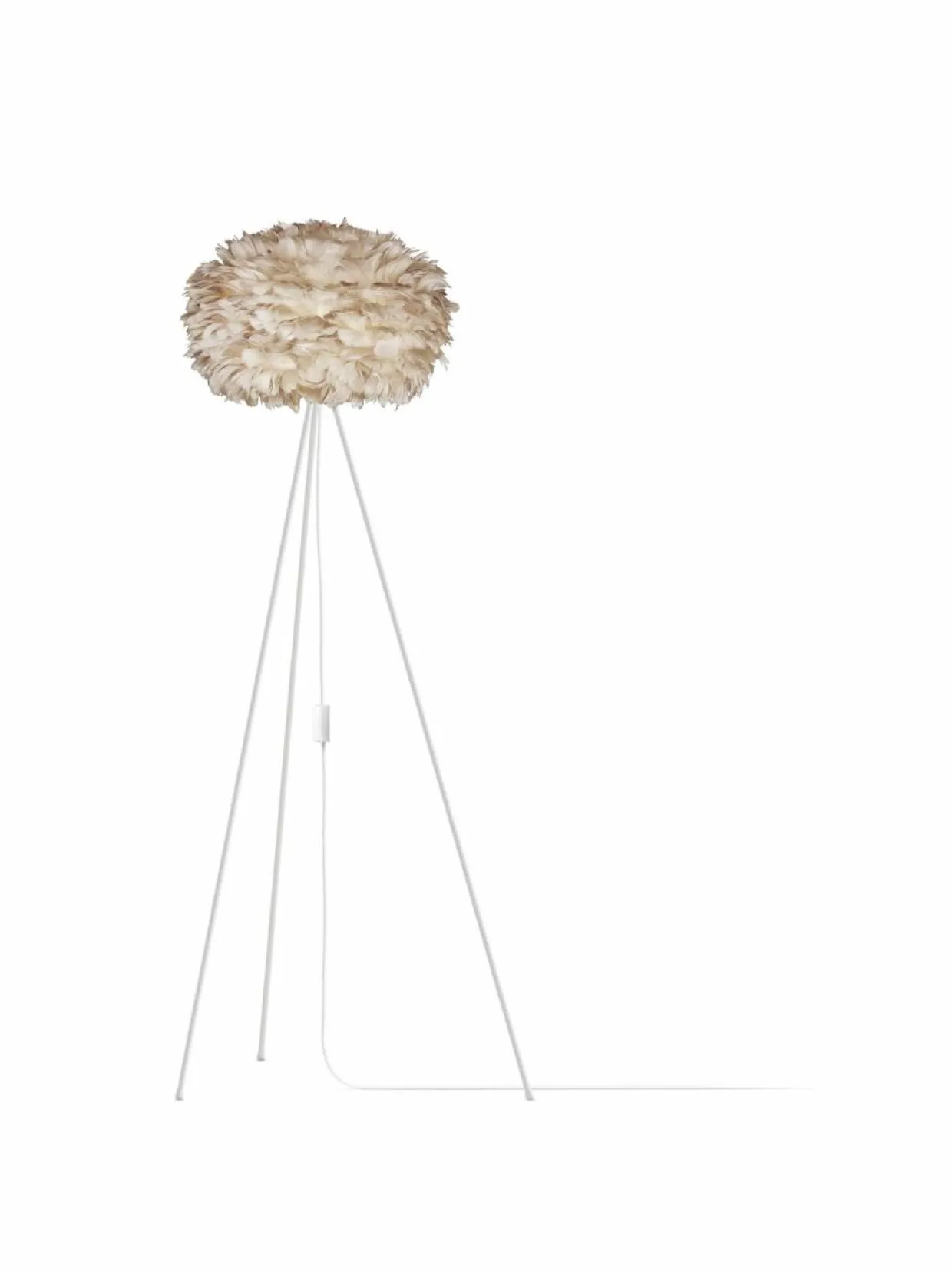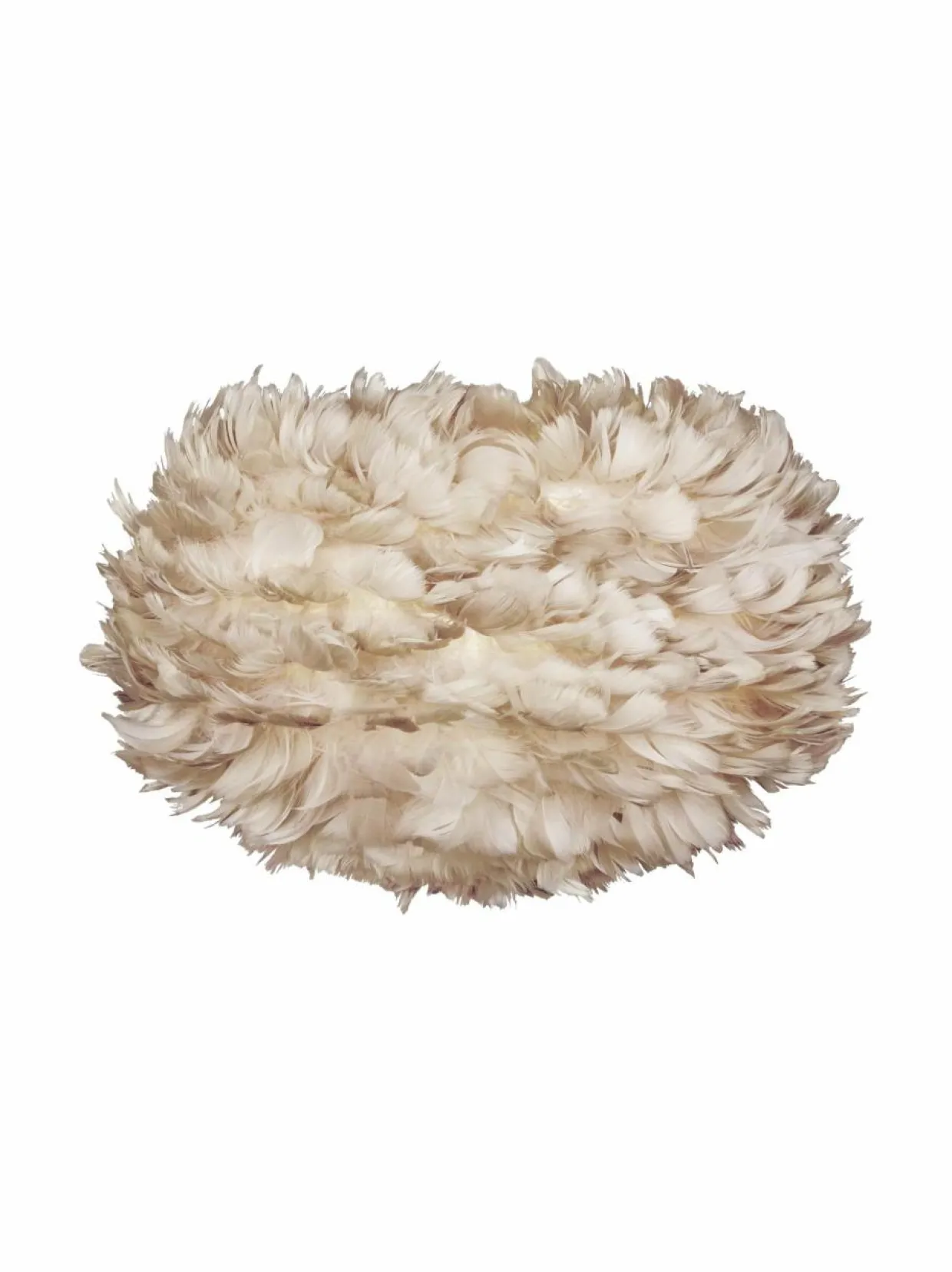 Lampunvarjostin on tehty käsin ja päällystetty luonnollisilla hanhenuntuvilla, kuten muutkin EOS-perheen valaisimet. Höyhenvalaisin antaa pehmeän ja lämpimän valon sekä tuo hienostunutta ja eleganttia tunnelmaa kaikenlaisiin sisustuksiin. Sopii sekä riippuvalaisimeksi että lattiavalaisimeksi kolmihaaraisen lattiajalan kanssa. Suunnittelija Soren Ravn Christensen. Valmistettu Tanskassa.