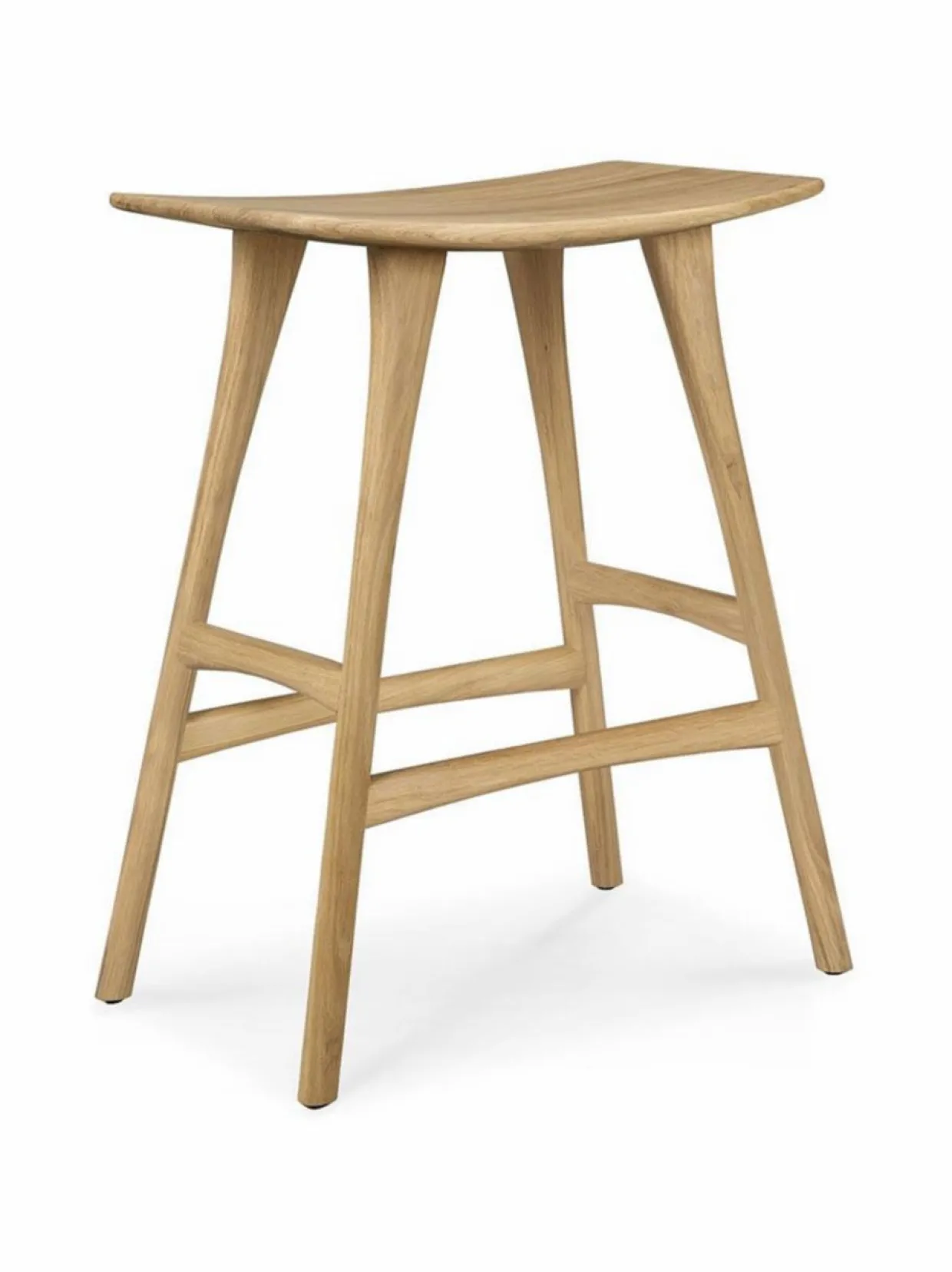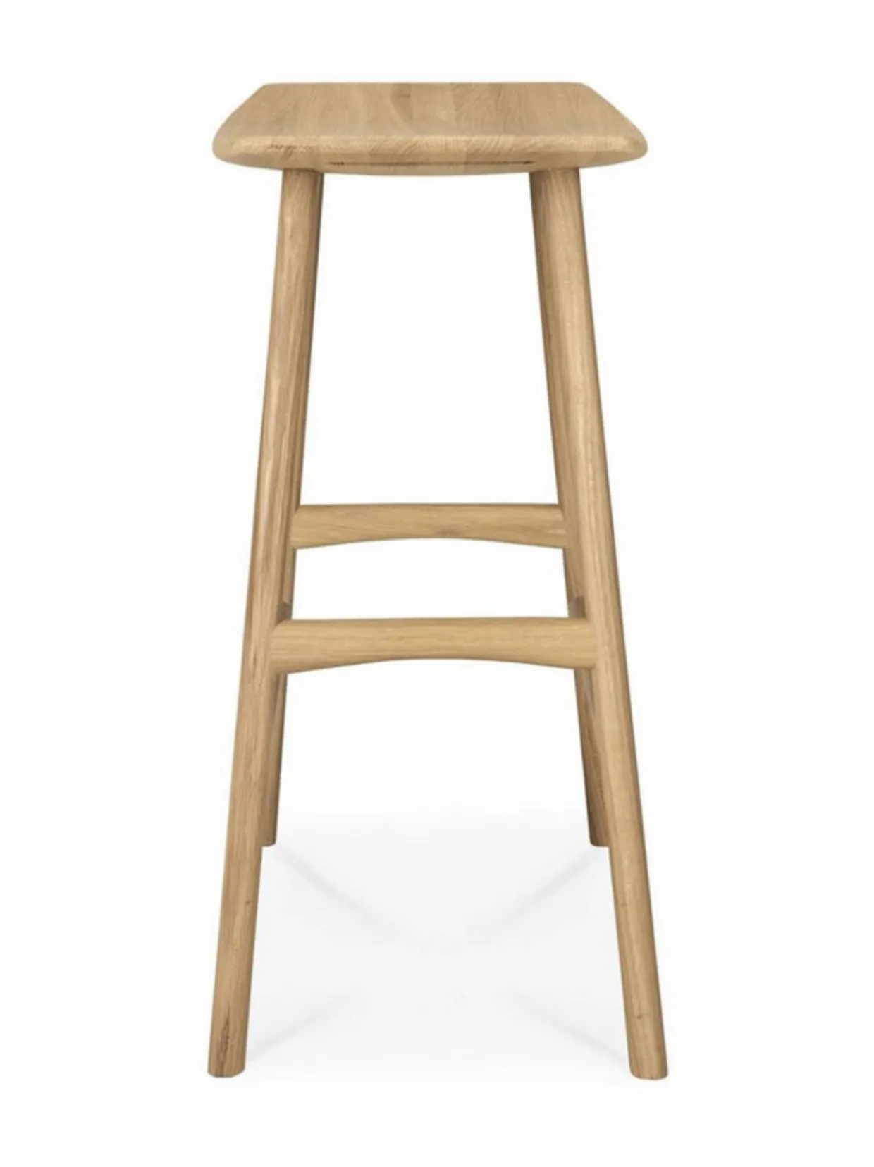 Osso jakkara on yksi suosituimmista jakkaroista. Pyöristetyt kulmat ja muotoiltu istuinosa tuovat pehmeyttä jakkaran hienostuneeseen ulkomuotoon. Tuoli on massivitammesta valmistettu, öljytty pintakäsittely