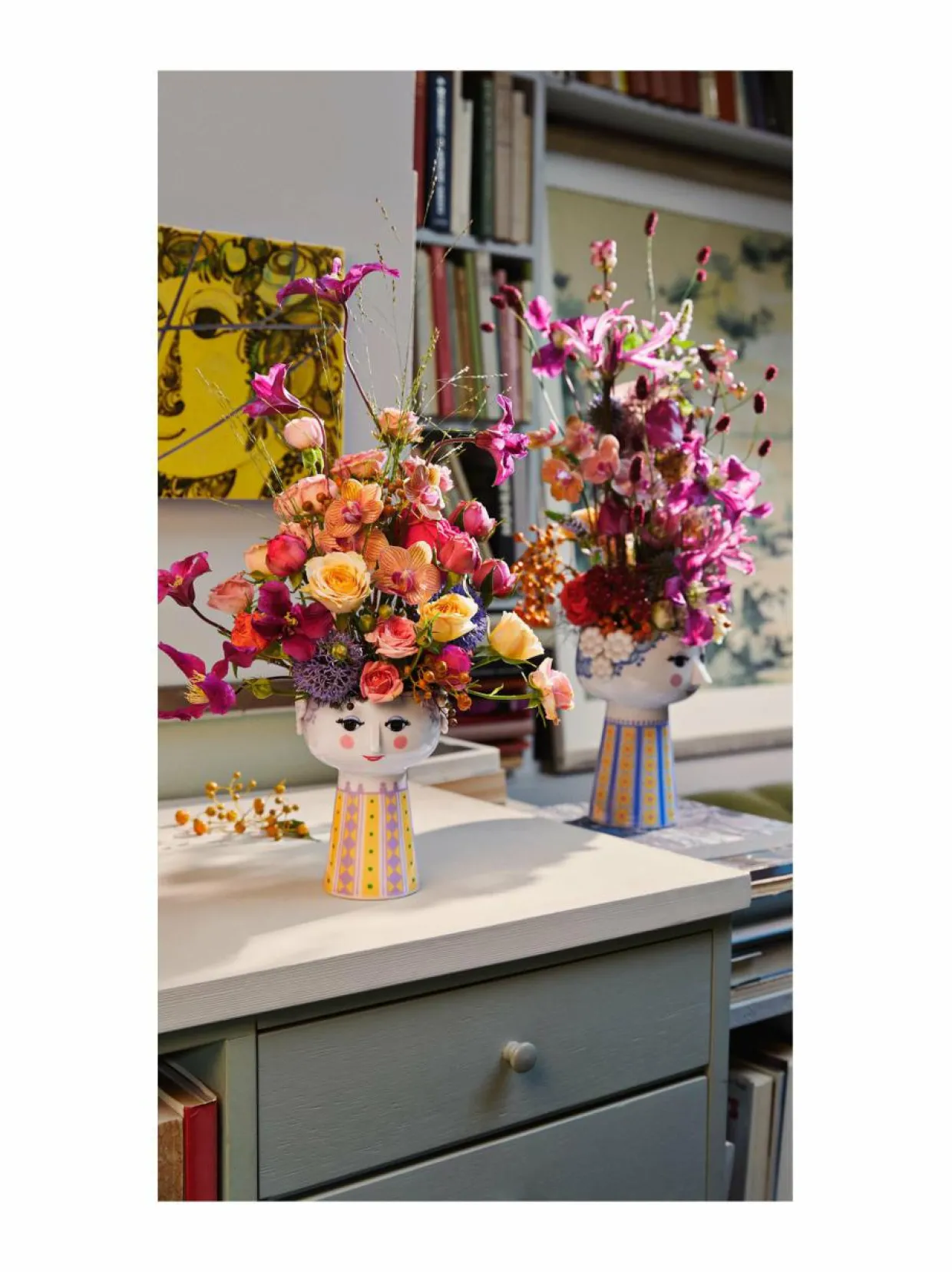 Bjørn Wiinbladin Eva-maljakko sopii täydellisesti kauniille kukkakimpuille tai yhdelle suurelle kukalle. Maljakko on valmistettu kiiltävästä posliinista ja siinä on värikäs koristelu, inspiraationaan Bjørn Wiinbladin alkuperäiset Eva-maljakot, joissa oli leveä suuaukko ja kartiomainen alaosa. Bjørn Wiinblad piirtänyt itse siihen upeat kasvot ja leninkimalli tulee myös hänen kuvituksistaan.