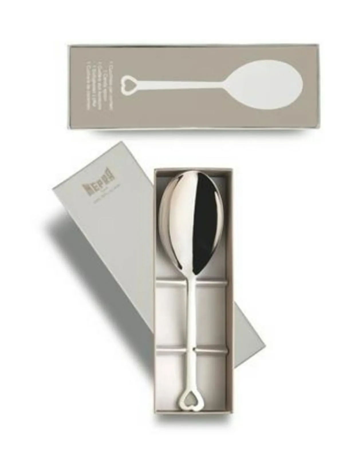 Evento-tarjoilulusikka lahjapakkauksessa. Konepestävä materiaali on ruostumatonta terästä.