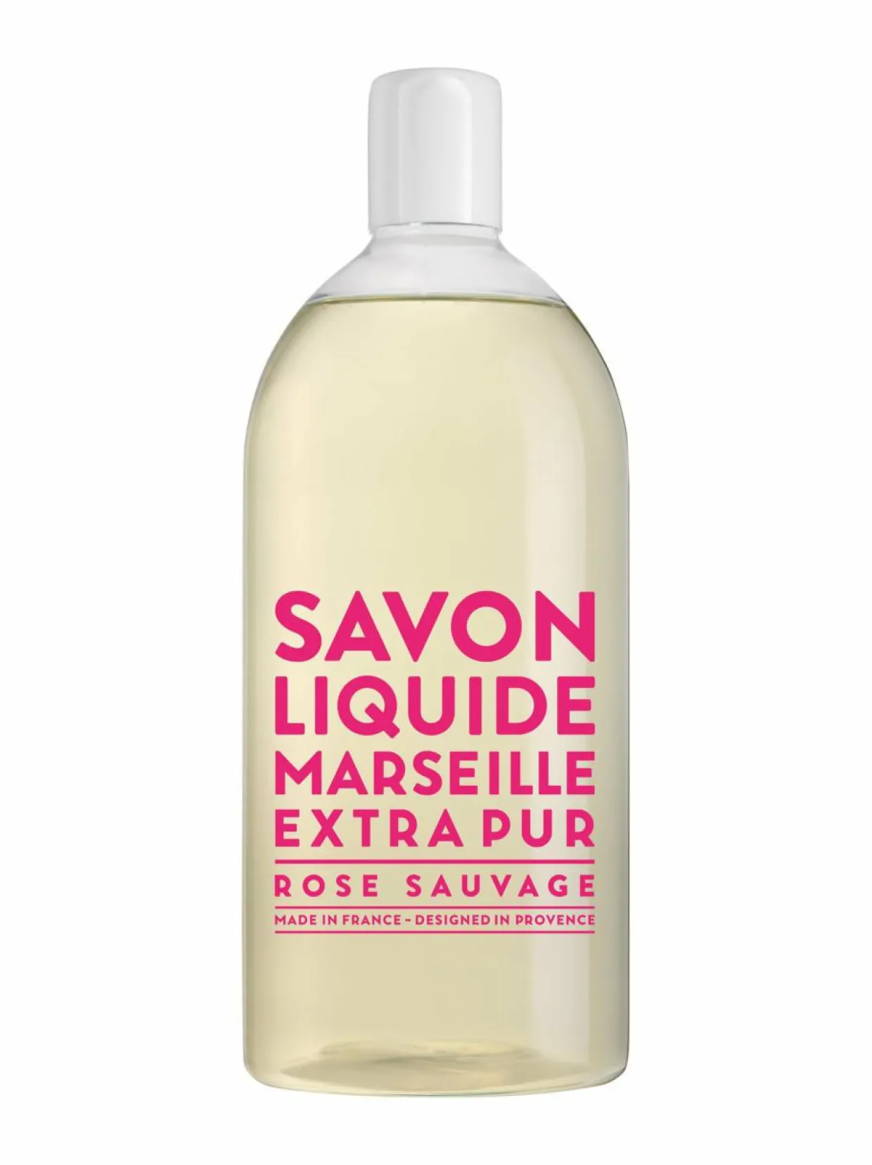 Pehmeän ruusuinen Wild Rose -nestesaippua saa tuoksunsa ruusun, appelsiinin ja tuoksuilangian eteerisistä ölyjistä. Nestemäinen marseillesaippua on valmistettu perinteisellä menetelmällä kasviöljyistä.
