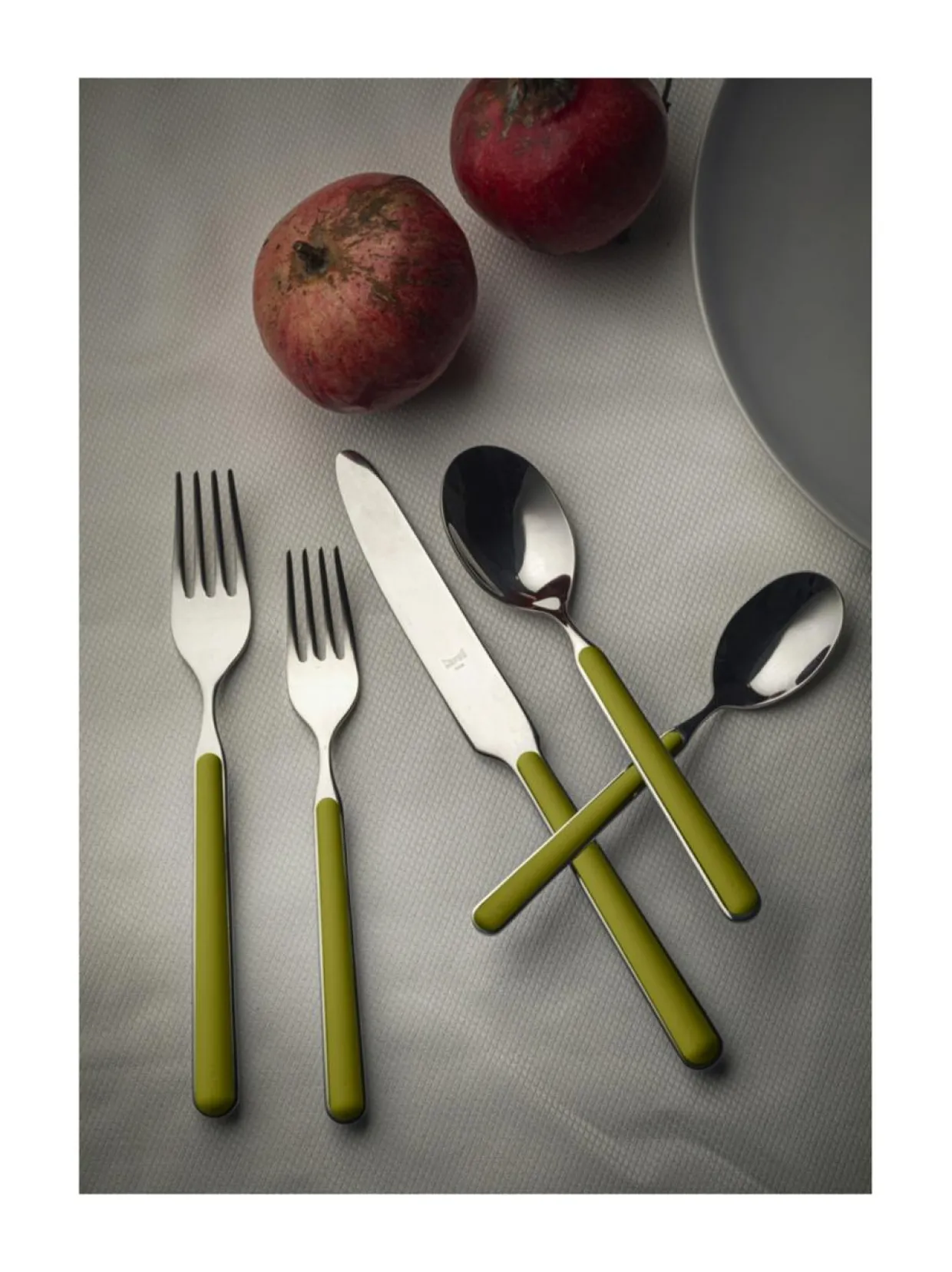 Lasikuidulla rikastettu hartsinen kahvaosa takaa aterimien kestävyyden ja värejen kirkkauden monien pesukertojenkin jälkeen. Kahvan hartsiosat ovat ultraäänihitsattuja mikä tekee kahvaosasta pitkäkestoisen. Materiaali ruostumatonta terästä, kahvaosat hartsia. Konepesunkestävä. Valmistettu Italiassa.Tuotenumero1518989 Materiaaliruostumaton teräs, hartsi, lasikuitu VäriOLIVE GREEN Avainsanataterimet, aterinsetti, väri, värilliset aterimet