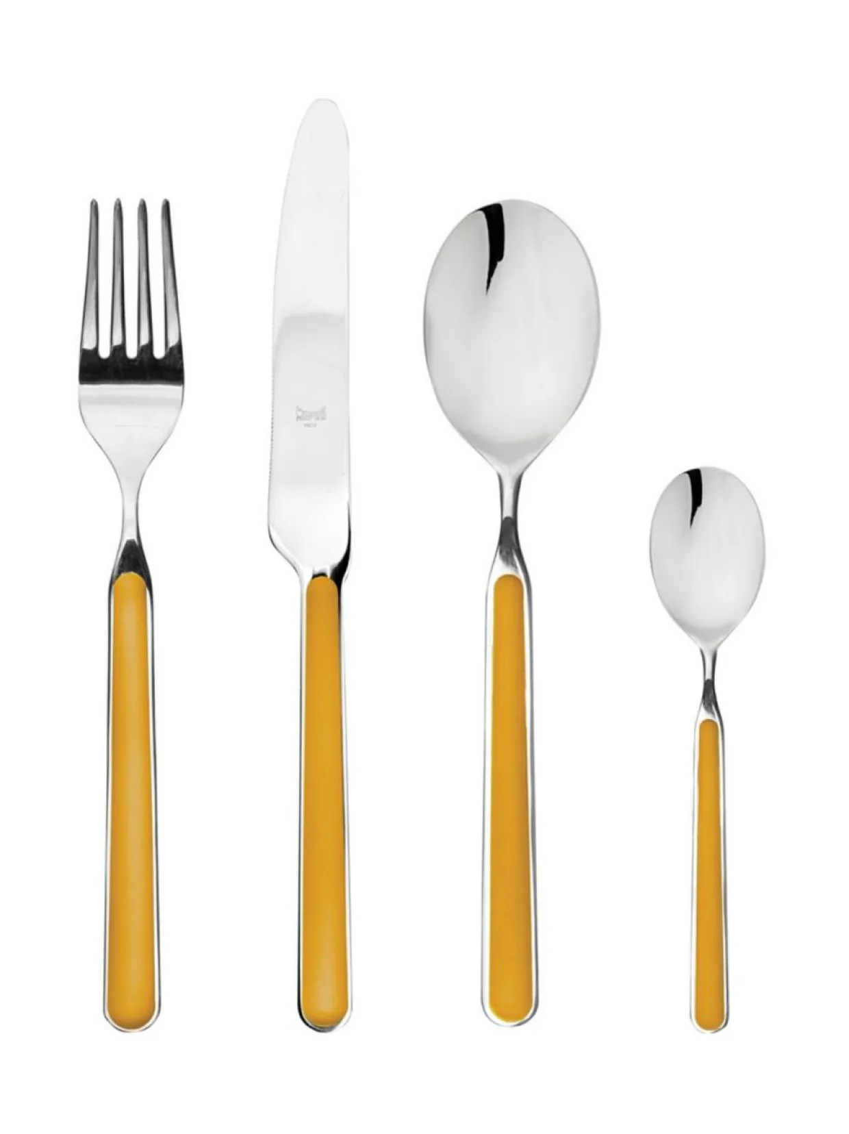 Lasikuidulla rikastettu hartsinen kahvaosa takaa aterimien kestävyyden ja värejen kirkkauden monien pesukertojenkin jälkeen. Kahvan hartsiosat ovat ultraäänihitsattuja mikä tekee kahvaosasta pitkäkestoisen. Materiaali ruostumatonta terästä, kahvaosat hartsia. Konepesunkestävä. Valmistettu Italiassa.Tuotenumero1518995 Materiaaliruostumaton teräs, hartsi, lasikuitu VäriOCHRE Avainsanataterimet, aterinsetti, väri, värilliset aterimet