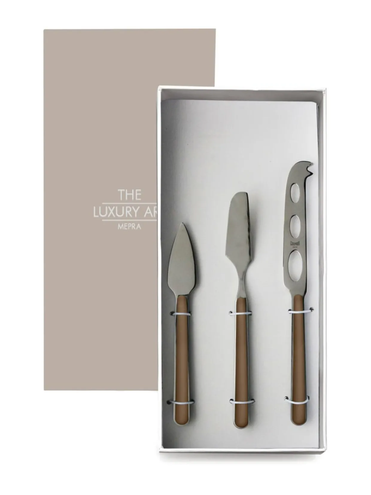 31 värisävyä: löydä täydellisesti sopiva väri kattaukseesi tai miksaa eri väreillä! Kolmeosainen juustoveitsisetti sisältää parmesaanijuustoveitsen, veitsen pehmeille juustoille ja juustolevittimen.