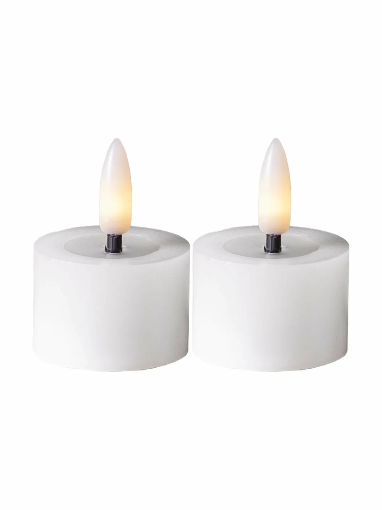 Vahasta valmistetun Flamme Flow tuikkukynttilän aitoa muistuttava LED-liekki ja kiiltävä, sulalta steariinilta näyttävä syvennys liekin alapuolella saavat sen näyttämään oikealta palavalta kynttilältä. Valon sävy on lämmin valkoinen. Pakkaus sisältää kaksi kynttilää. Ajastintoiminnon avulla kynttilä palaa 6 tunnin ajan kerrallaan ja syttyy seuraavana päivänä samaan aikaan uudelleen. Kynttilät toimivat kahdella CR2032-paristolla, jotka sisältyvät pakkaukseen. Halkaisija 4 cm ja korkeus 5 cm. Kiinteä LED, lamppua ei voi vaihtaa. Sisäkäyttöön IP20.