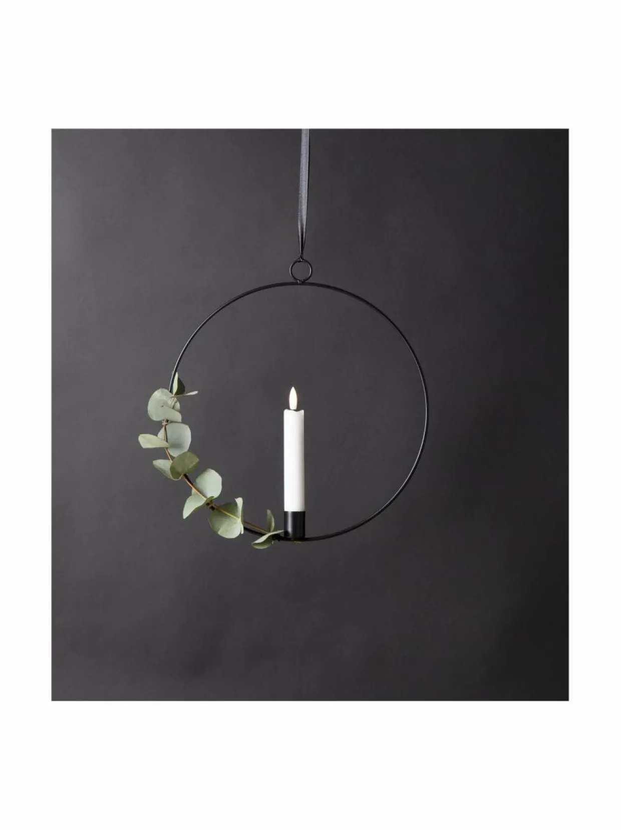 Flamme on tyylikäs, musta metallirengas, jonka voi ripustaa esimerkiksi ikkunaan tai seinälle tunnelmanluojaksi. Renkaan keskellä on lämpimän valkoista valoa hohtava kaunis LED-kynttilä. Renkaan korkeus on 30 cm, leveys 28,5 cm ja syvyys 2,5 cm. Kynttilä on 15 cm korkea, ja toimii yhdellä AA-paristolla. Paristo ei sisälly pakkaukseen. Kynttilässä on ajastintoiminto, joka sammuttaa kynttilän 6 tunnin kuluttua ja sytyttää sen taas 18 tunnin päästä uudelleen. LED-valon paloaika on n. 10 000 tuntia.