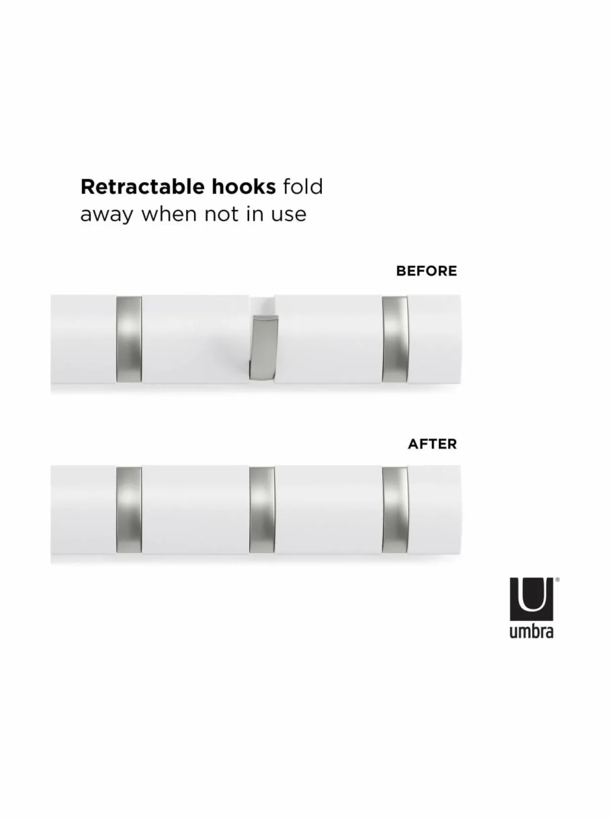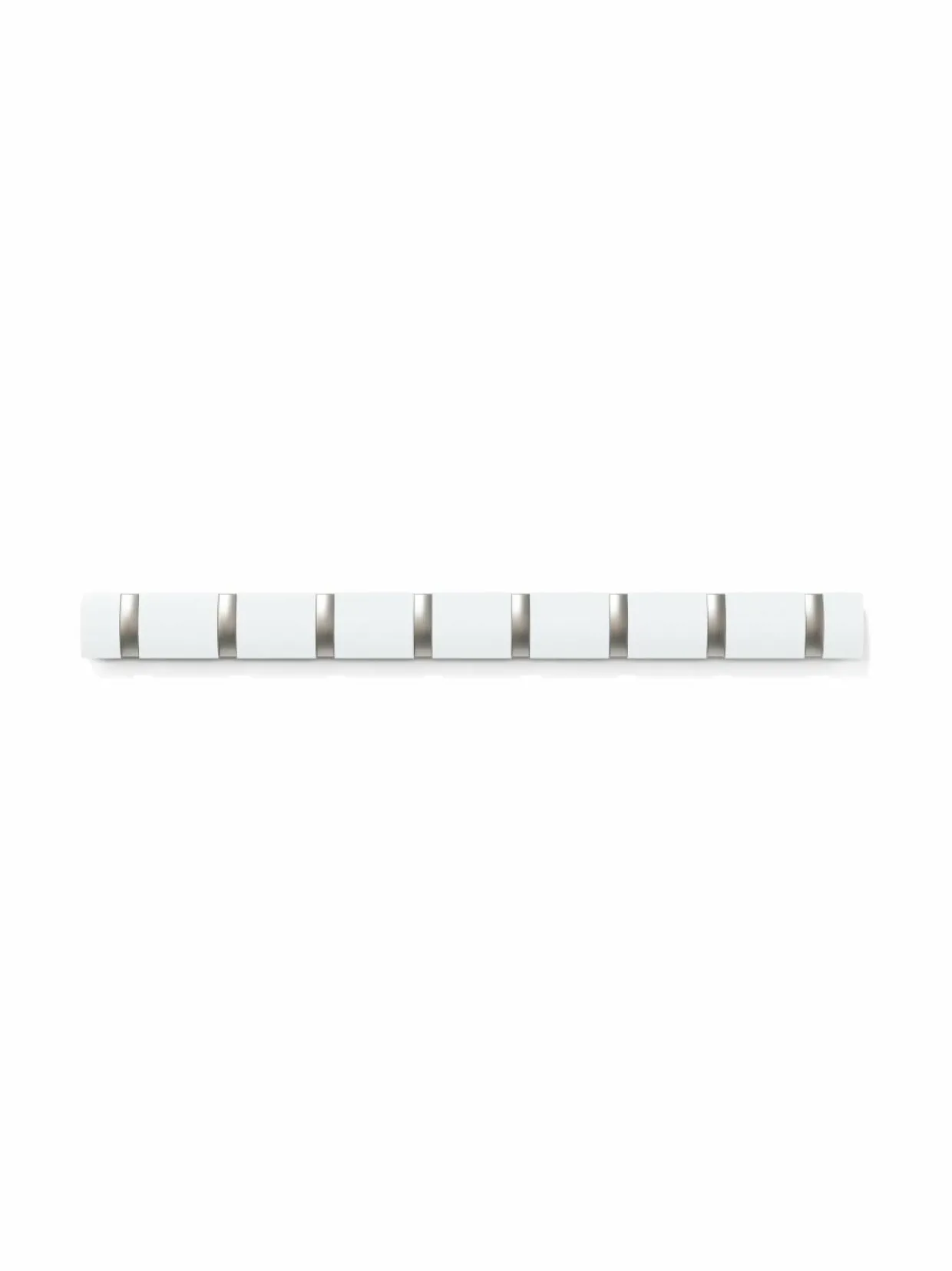 Seinään asennettavassa puunaulakossa on kahdeksan taittuvaa, nikkelillä päällystettyä koukkua. Naulakon mitat ovat noin 82 x 3 x 6,6 cm.