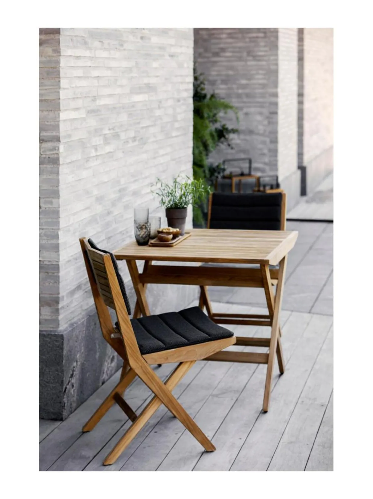Käytännöllinen Flip-taittopöytä ulkokäyttöön. 80 cm lev x 80 cm syv x 72,5 cm kork. Tyylikästä ja kestävää tiikkiä.
