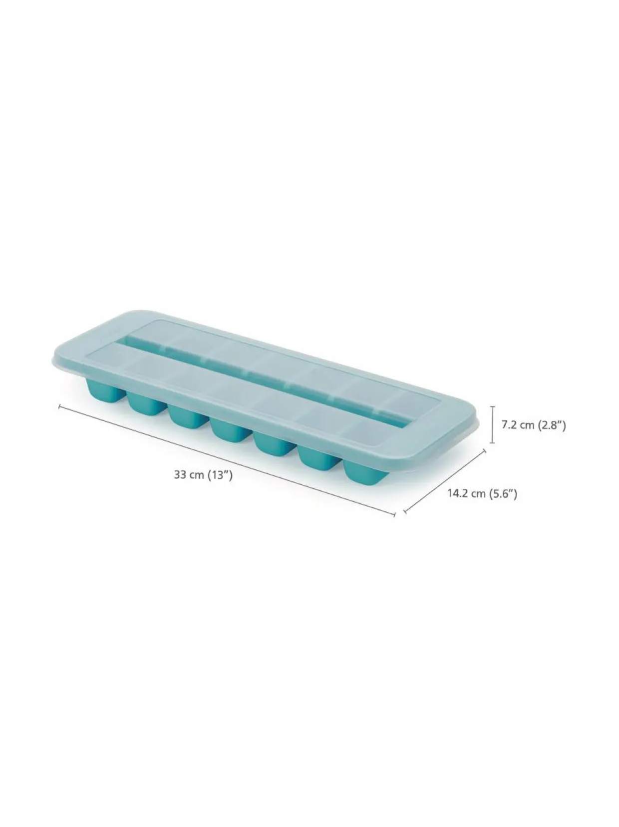 Tässä innovatiivisessa jääpala-alustassa on onkaloita, jotka on yhdistetty toisiinsa, jolloin vesi pääsee virtaamaan vapaasti koko alustan läpi. Tämä älykäs muotoilu helpottaa täyttöä ja vähentää roiskeita. Kun kansi laitetaan päälle, se muodostaa lopullisen seinän jokaiseen koloon, mikä varmistaa yksittäisten kuutioiden muodostumisen veden jäätyessä. Kansi on myös pinottava, joten pakastimessa voi laittaa useita jääpalamuotteja helposti päällekkäin. Pakkauksessa kaksi kannellista jääpalamuottia.
