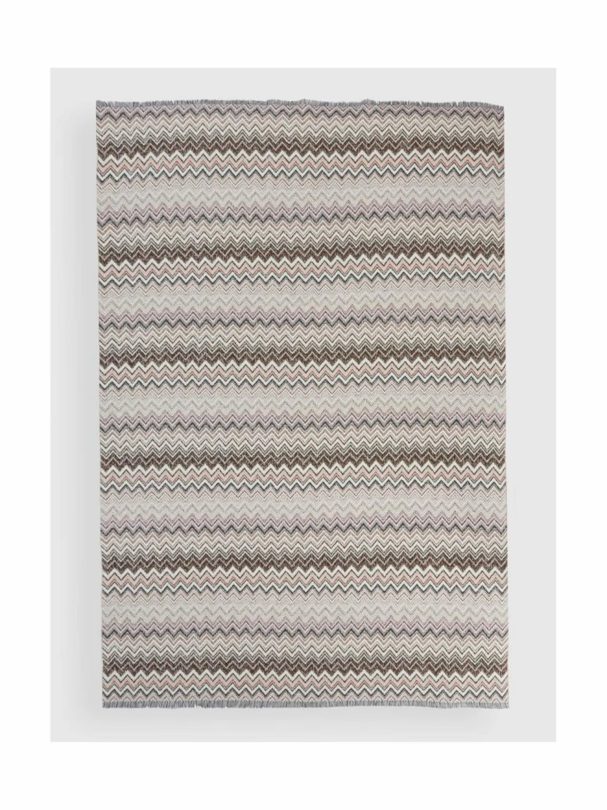 Missoni Home:in Forest-huopa on valmistettu puuvillasekoitteesta, johon on lisätty mm. villaa ja ripaus kashmiria. Kashmir lisää huopaan ylellistä sileyttä. Peite on kuvioitu Missonin perinteisellä siksak-kuosilla, jonka väritys on tässä versiossa seesteisen levollinen.