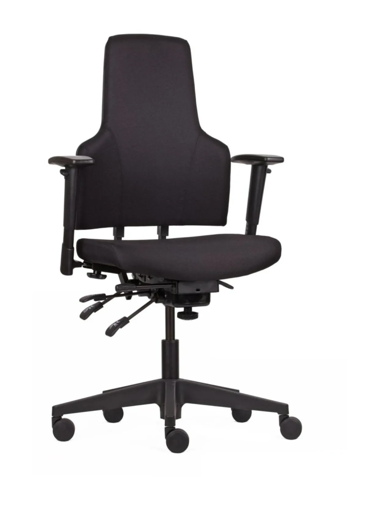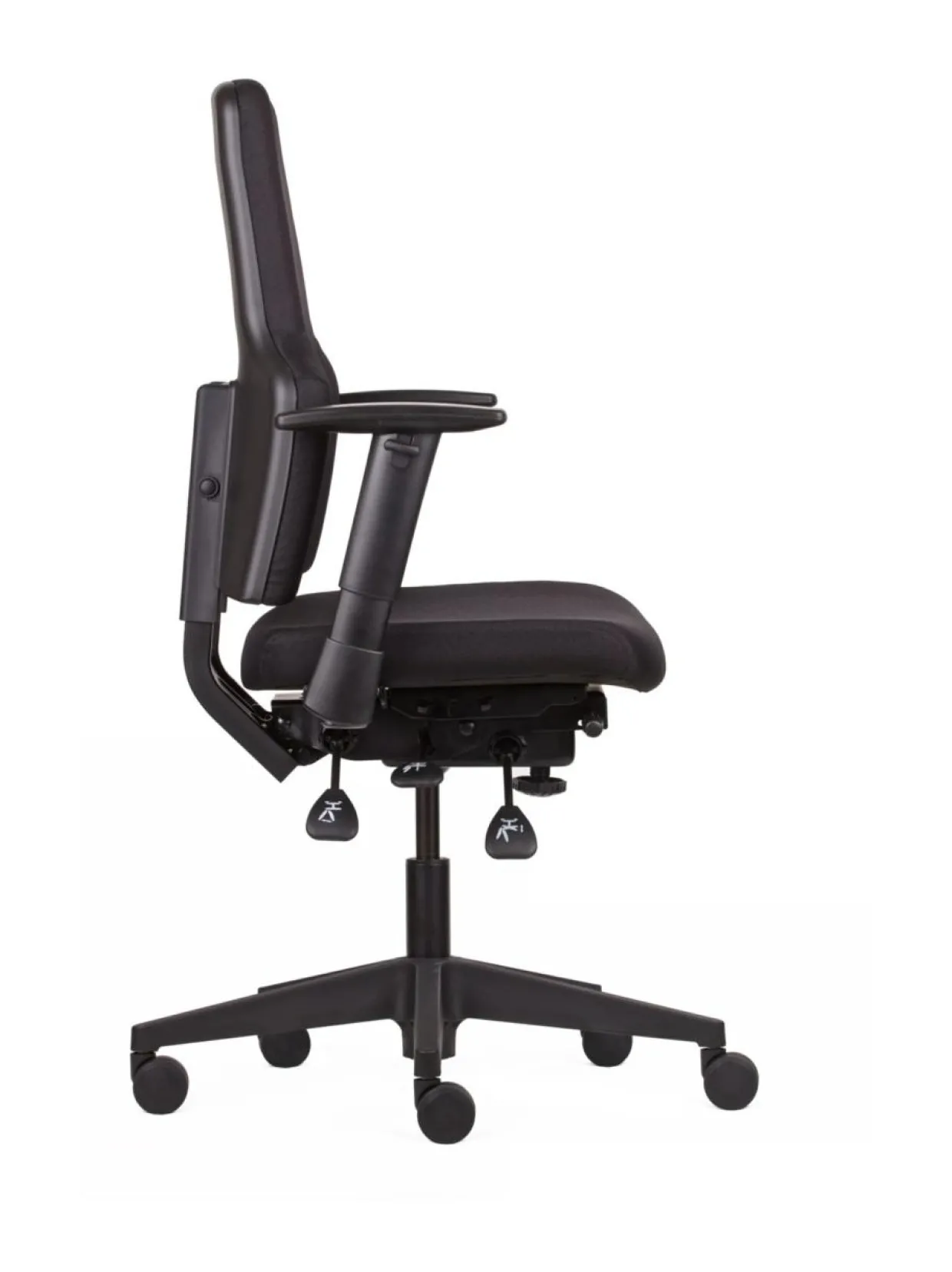 FREE A360-työtuolin ylhäältä kapea selkänoja antaa tuen juuri sinne missä sitä tarvitaan jättäen tilaa lapaluiden ja käsien liikkeille. Näin olkapäät eivät painu eteen selkänojaan nojattaessa vaan tuki tulee paremmin rangalle. Tuolin monipuoliset säätömahdollisuudet auttava löytämään jokaiselle käyttäjälle hyvän istumaergonomian. Korkealuokkaiset materiaalivalinnat takaavat tuolille pitkän käyttöiän. Istuimessa tyylikäs musta Oasis 9000-kangas.