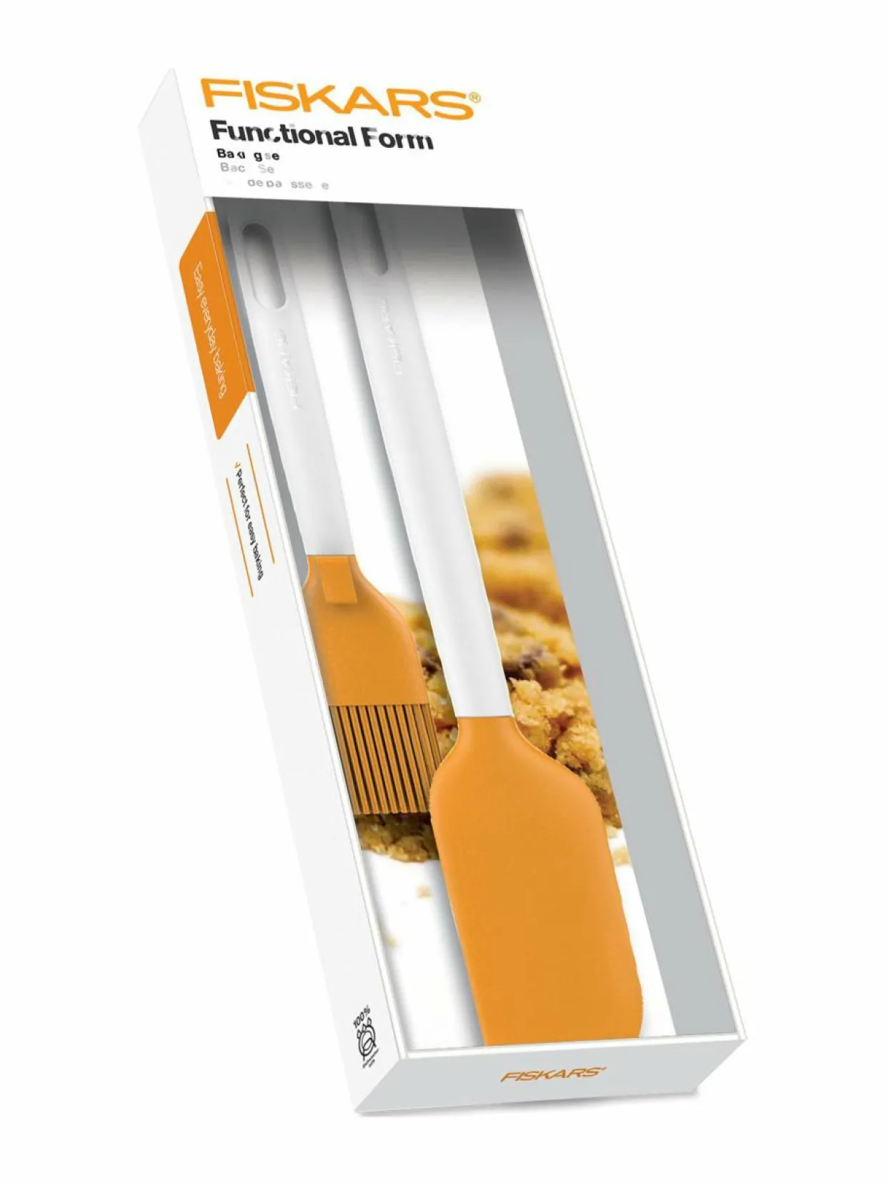 Functional Form -leivontasetti sisältää taikinakaapimen ja silikonisudin.