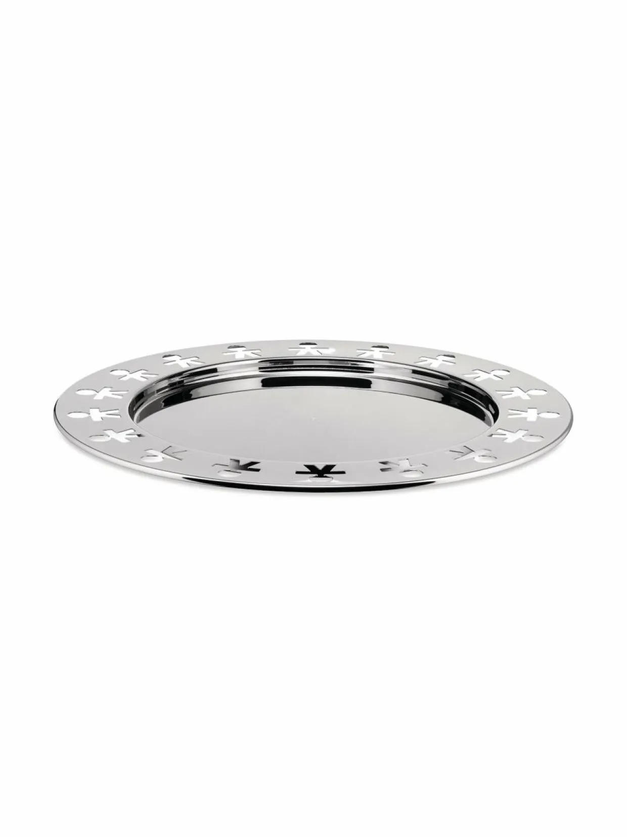 Hauskasti kuvioidun tarjottimen on suunnitellut King Kong -suunnittelijaryhmä. Halkaisija on 40 cm ja materiaali maalattua ruostumatonta terästä.