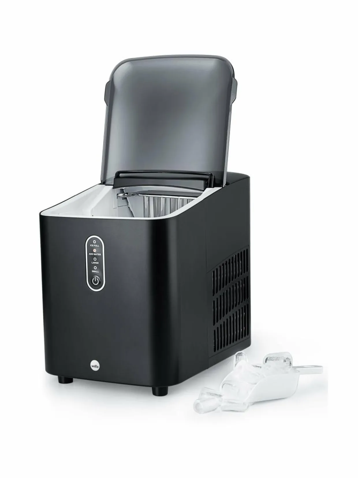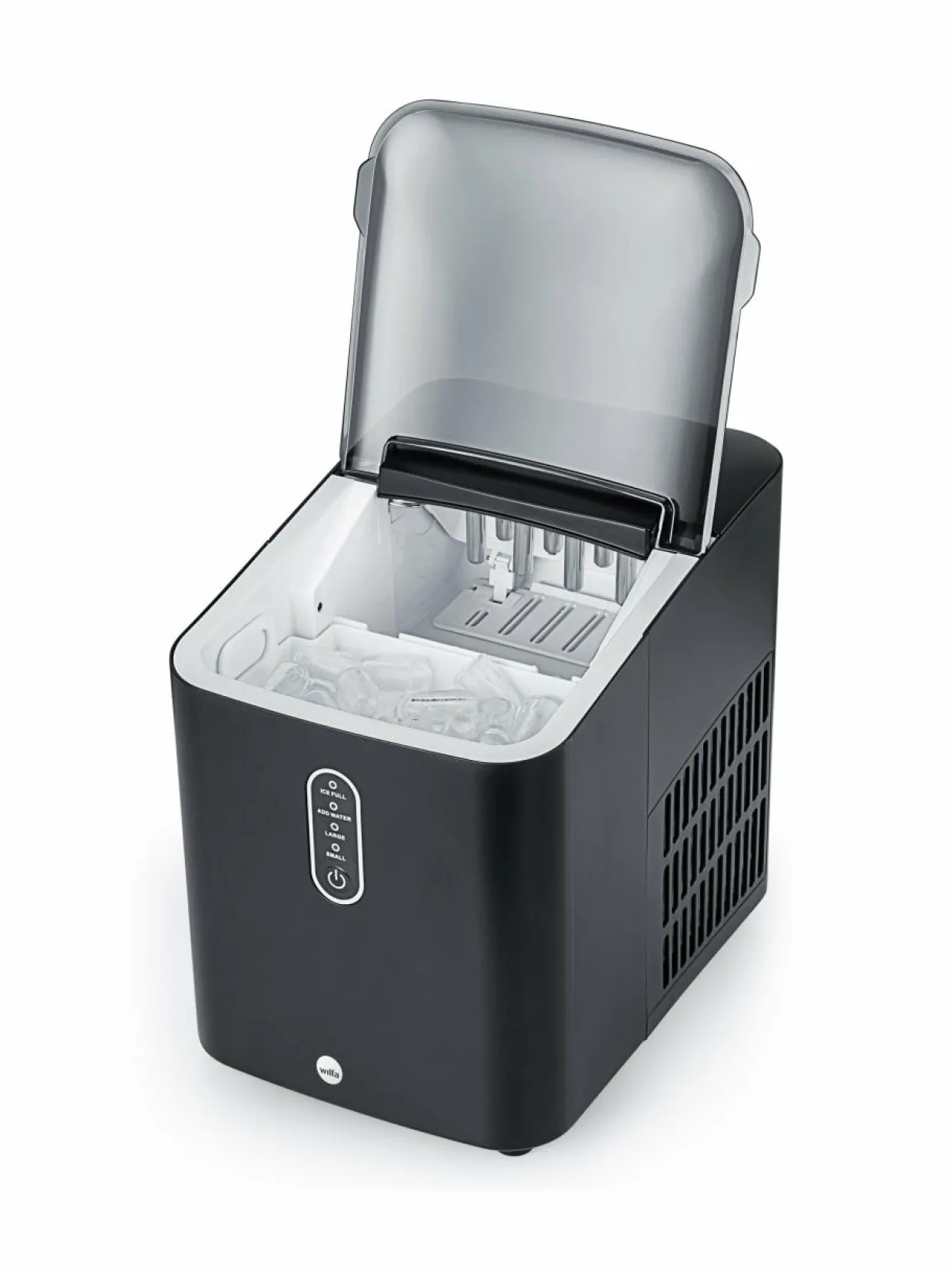- Ohjauspaneelista saat valittua jääpalojen koon, ja se kertoo sinulle, milloin jääpalasäiliö on täynnä tai milloin laitteeseen tulisi lisätä vettä