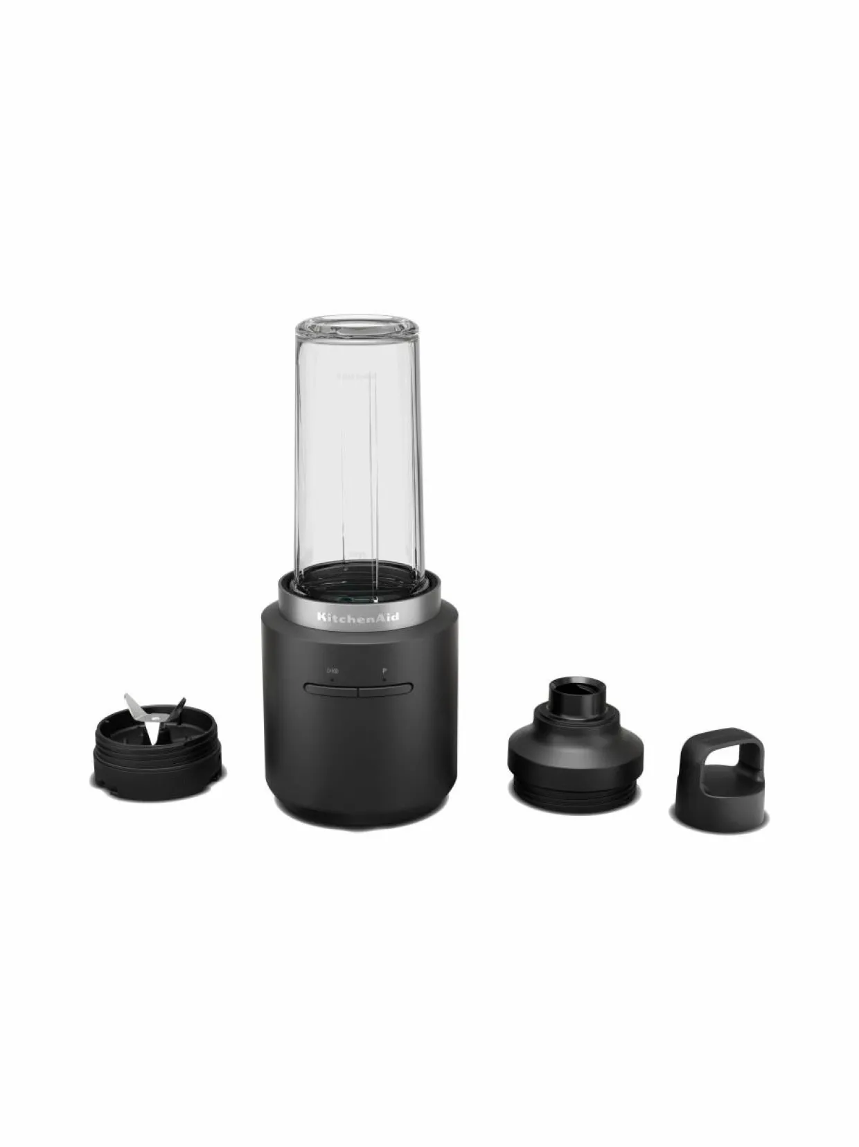 Kannettava, johdoton KitchenAid Go -tehosekoitin (ilman akkua) maukkaiden smoothieiden ja jäähilejuomien valmistamiseen. Laitetta voi käyttää myös ulkona. Ruostumattomasta teräksestä valmistetut epäsymmetriset terät sekoittavat ainekset tehokkaasti neljässä eri kulmassa. 473 ml:n kannu on valmistettu BPA-vapaasta kestävästä muovista. Yhteensopiva KitchenAid Go -lataustelakka myydään erikseen. Pakkaukseen kuuluvat seuraavat tuotteet: