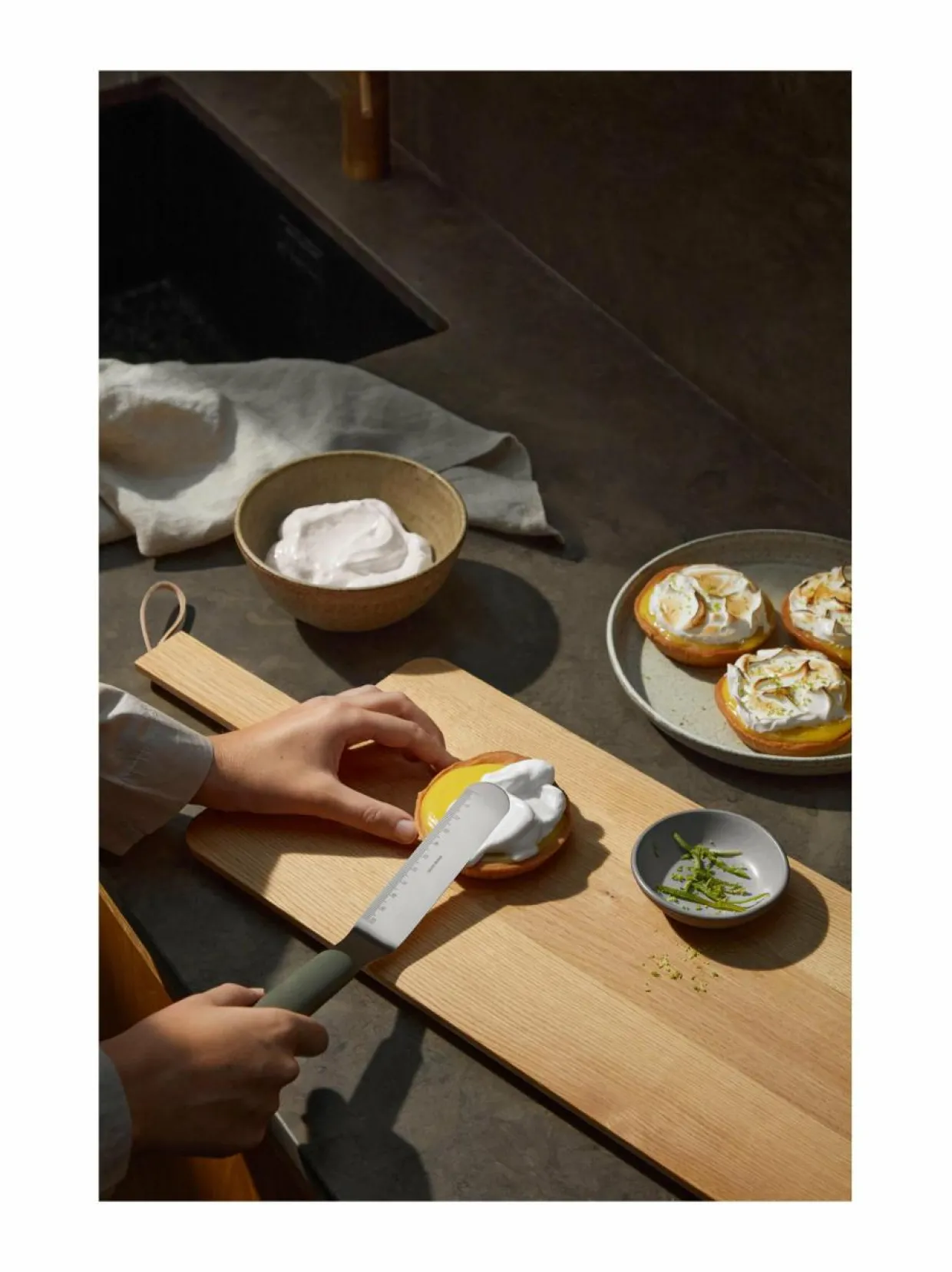 Eva Solo palettiveitsi on monikäyttöinen keittiöväline, jossa on kaunis, ajaton muotoilu.Kulmaisen terän ansiosta levität kuorrutteet tasaisesti kakun päälle,erityisesti sen sivuille. Samalla voit käyttää sitä vaikka hampurilaisten kääntämiseen.Mukava kahva. Konepesun kestävä.