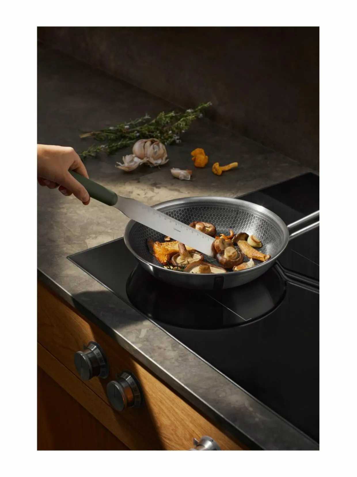 Eva Solo Green Tools -lasta on monikäyttöinen keittiöväline, jonka avulla esimerkiksi kakkukuorrutuksen levittäminen onnistuu helposti. Lisäksi lasta sopii hyvin kakkujen ja piirakoiden leikkaamiseen sekä paistinlastaksi, jonka avulla ainesten kääntäminen tai niiden poistaminen kuumalta paistinpannulta onnistuu vaivattomasti. Hyvin muotoillusta kahvasta saa mukavan ja tukevan otteen.