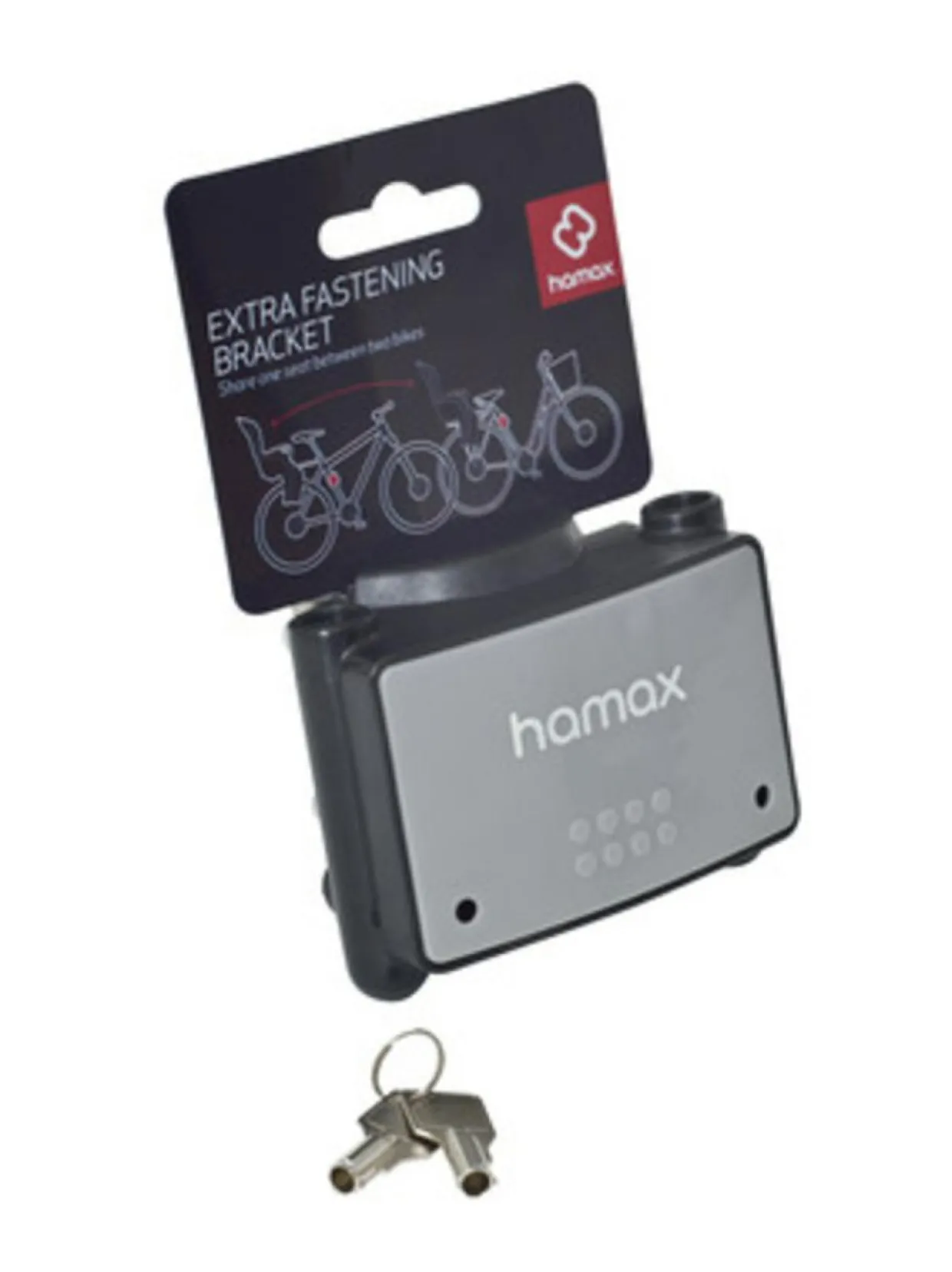 Hamax pyöränistuimen lisäkiinnike toiseen polkupyörään on lukittava malli, joka estää mahdollisia pyöränistuimen varkauksia. Lisäkiinnike helpottaa pyöränistuimen vaihtoa pyörästä toiseen, jos perheessä on kaksi tai useampia pyöriä. Lisäkiinnike nopeuttaa vaihtoa pyörästä toiseen. Kiinnike käy kaikkiin uudempiin Hamaxin istuimiin.