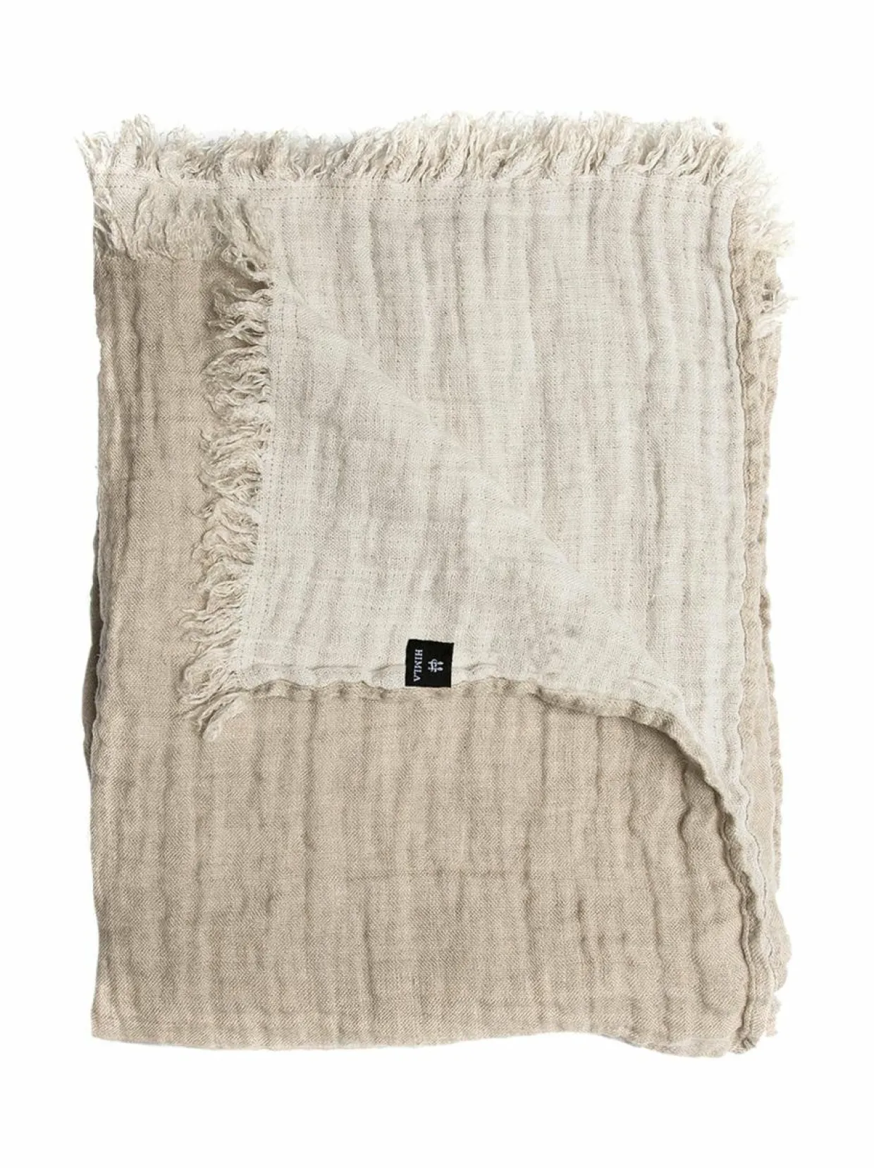 Kaunis pellavasta valmistettu Hannelin-huopa tuo luonnonläheistä tunnelmaa sisustukseen. Päädyissä on kevyet hapsut.