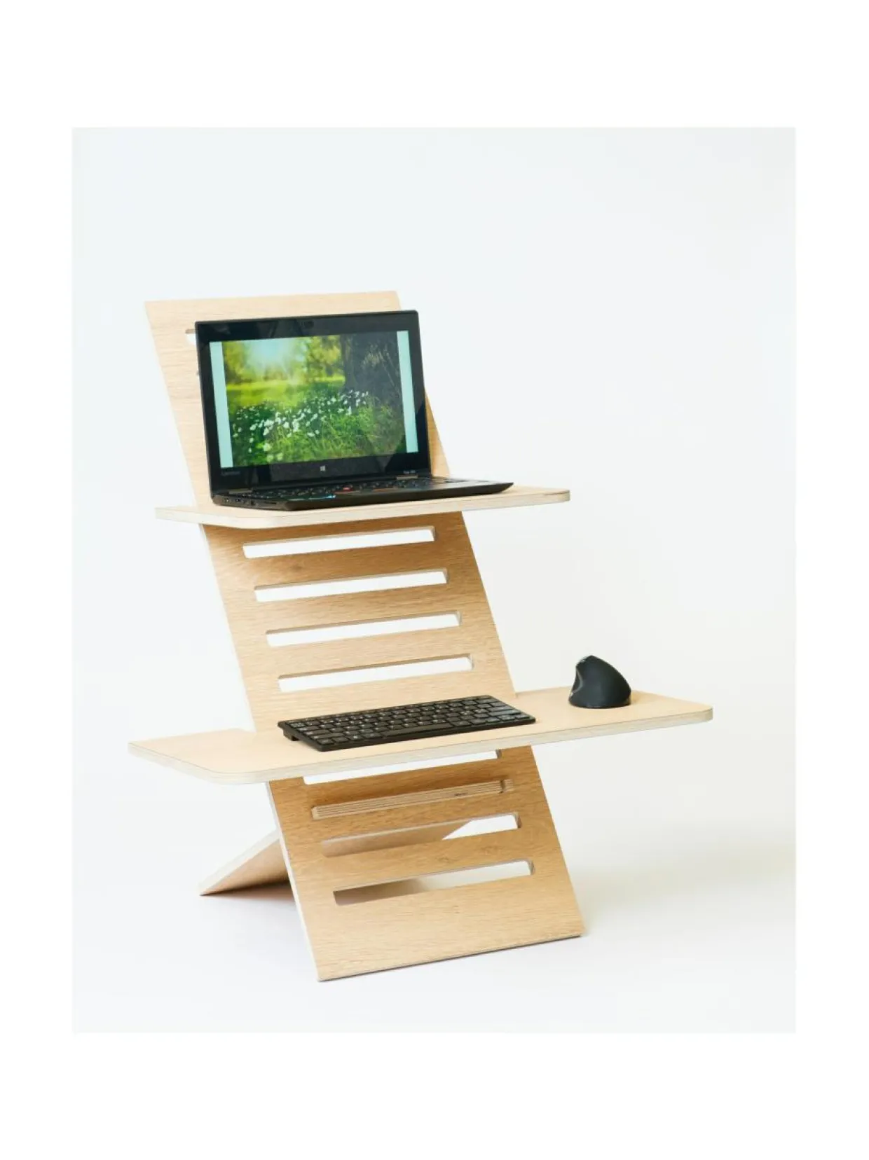 Tuotenumero1268482 MateriaaliSuomalaista kestävää koivuvaneria, tammilaminaatti Takuu120 kk VäriTAMMILAMINAATTI AvainsanatTyöpöytä, seisomatyötaso, ergonominen, ergonominen työsaso, kotimainen, läppäriteline, seisomatyö, kannettavan teline, kotitoimisto, etätyö, ergonominen työpiste