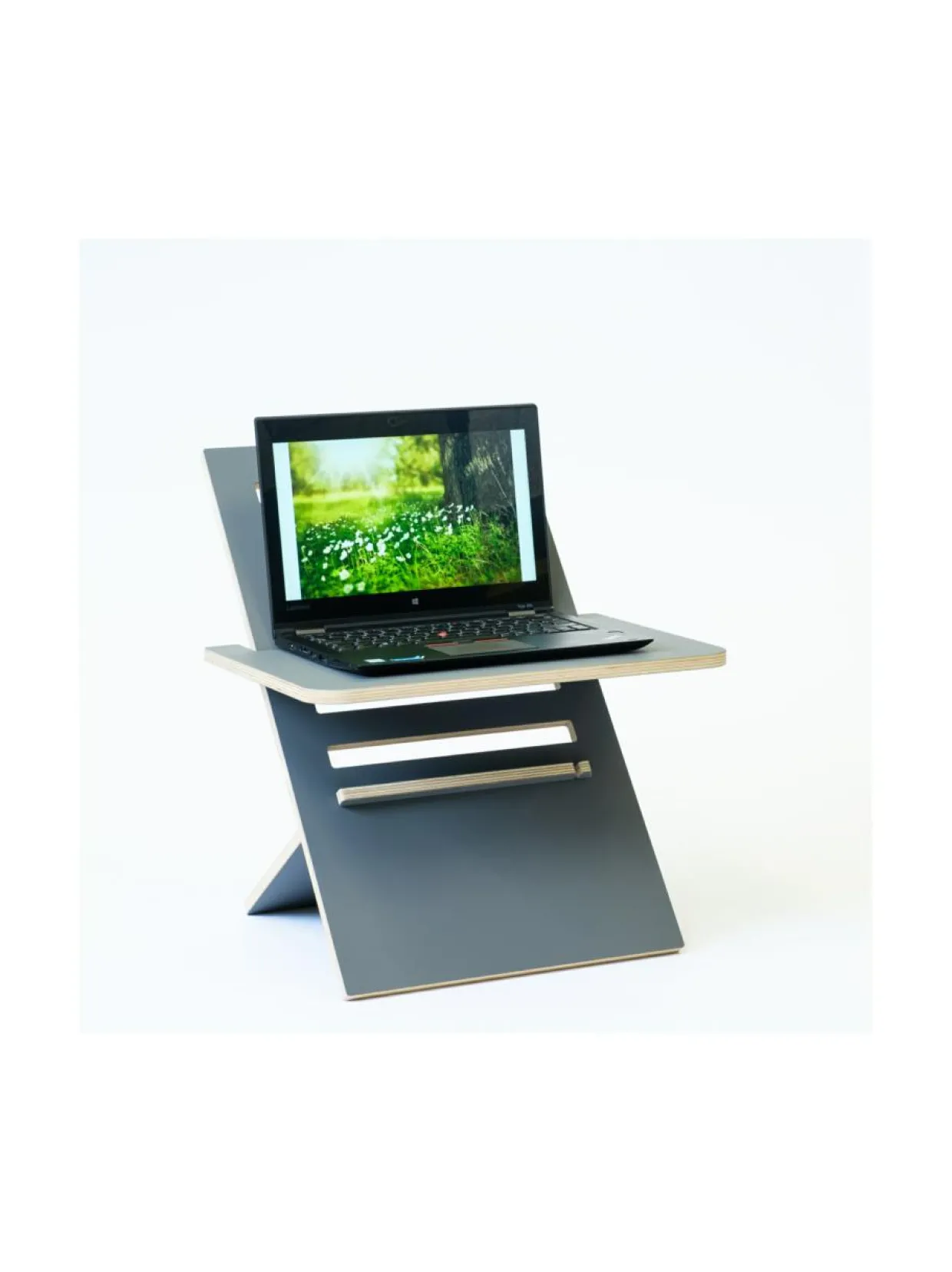 Fiksumpi, ekologisempi ja tehokkaampi tapa työskennellä. Tyylikäs ja ergonominen laptop-teline, valmistettu Suomessa. Säädä korkeutta nopeasti ja helposti; 6 eri korkeutta valittavana! Lifterin jalkalevyssä on innovatiivinen patentoitu Puujousi™, joka tekee tuotteen käyttämisestä turvallista ja mukavaa. Kolmesta osasta koostuva Hima Lifter laptop-teline on helposti kasattava ja siirreltävä. Säädä työskentelykorkeus mieleiseksi nopeasti ja helposti. Yksinkertaisen rakenteen ansiosta tuotteen käyttö on mukavaa sekä tehokasta ja se muuttaa minkä tahansa kiinteän pöydän seisomatasoksi hetkessä! Kantokyky 20kg. Suomalaista kestävää koivuvaneria, antrasiitti Anti-fingerprint laminaatti.