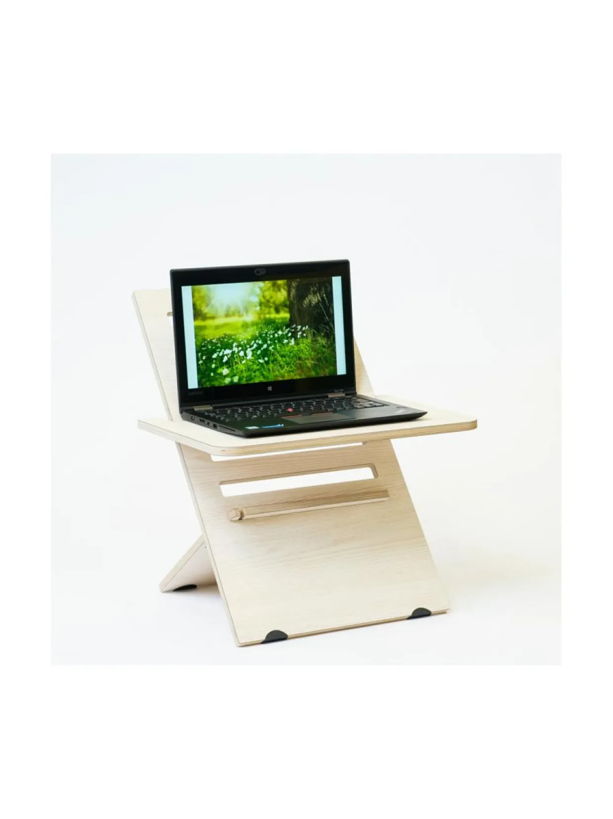 Fiksumpi, ekologisempi ja tehokkaampi tapa työskennellä. Tyylikäs ja ergonominen laptop-teline, valmistettu Suomessa. Säädä korkeutta nopeasti ja helposti; 6 eri korkeutta valittavana! Lifterin jalkalevyssä on innovatiivinen patentoitu Puujousi™, joka tekee tuotteen käyttämisestä turvallista ja mukavaa. Kolmesta osasta koostuva Hima Lifter laptop-teline on helposti kasattava ja siirreltävä. Säädä työskentelykorkeus mieleiseksi nopeasti ja helposti. Yksinkertaisen rakenteen ansiosta tuotteen käyttö on mukavaa sekä tehokasta ja se muuttaa minkä tahansa kiinteän pöydän seisomatasoksi hetkessä! Kantokyky 20kg. Suomalaista kestävää koivuvaneria, saarnilaminaatti.