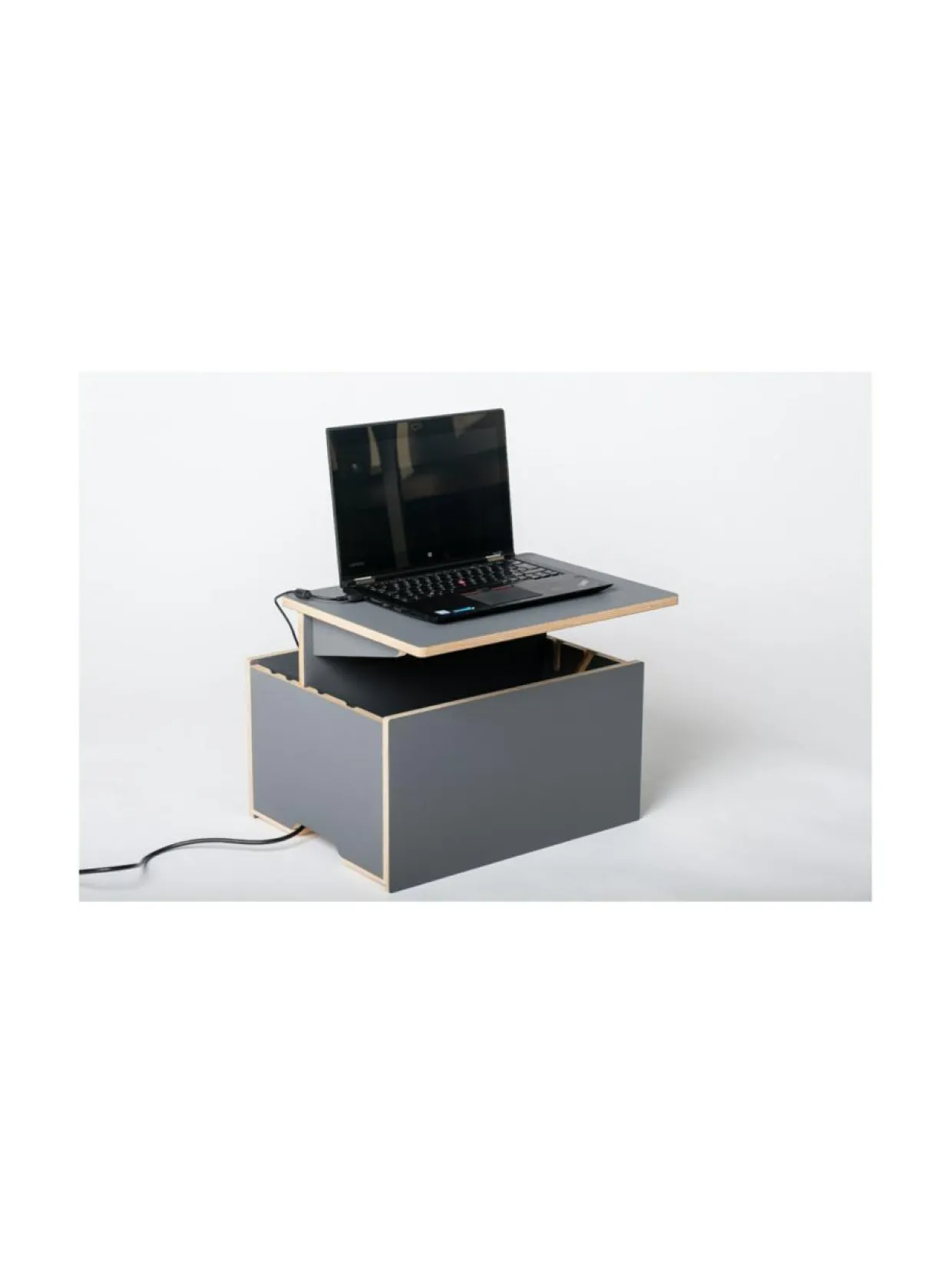 Fiksumpi, ekologisempi ja tehokkaampi tapa työskennellä. Magic Boksi on patentoitu suomalainen innovaatio. Se on loistava etätyön ergonomiatuote jota voit käyttää työskentely- ja säilytysratkaisuna sekä osana kotisi sisustusta. Magic Boksin avulla parannat läppärityöskentelyn ergonomiaa ja käytät sitä myös moneen muuhun tarpeeseen. Tässä laatikossa voit säilyttää johdot, laturit ja tietokoneen tai muita esineitäsi. Kannen, joka on samalla työtaso, korkeutta voidaan säätää neljään eri korkeuteen ja myös kallistettuna käyttää lukutelineenä tietokoneelle tai tabletille. Tuote on valmistettu Suomessa 14 mm paksusta kestävästä koivuvanerista, joka on laminoitu. Materiaalit ovat suunniteltu siten, että tuote kestää kulutusta.