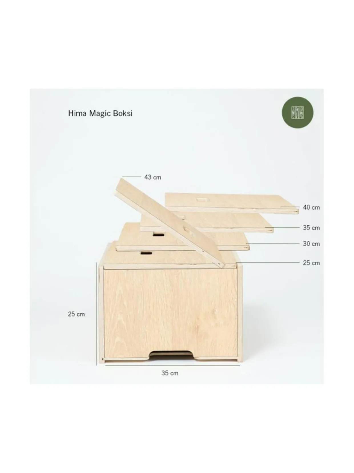 Fiksumpi, ekologisempi ja tehokkaampi tapa työskennellä. Magic Boksi on patentoitu suomalainen innovaatio. Se on loistava etätyön ergonomiatuote jota voit käyttää työskentely- ja säilytysratkaisuna sekä osana kotisi sisustusta. Magic Boksin avulla parannat läppärityöskentelyn ergonomiaa ja käytät sitä myös moneen muuhun tarpeeseen. Tässä laatikossa voit säilyttää johdot, laturit ja tietokoneen tai muita esineitäsi. Kannen, joka on samalla työtaso, korkeutta voidaan säätää neljään eri korkeuteen ja myös kallistettuna käyttää lukutelineenä tietokoneelle tai tabletille. Tuote on valmistettu Suomessa 14 mm paksusta kestävästä koivuvanerista, joka on laminoitu. Materiaalit ovat suunniteltu siten, että tuote kestää kulutusta.