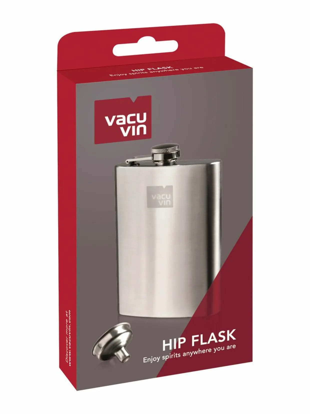 Tyylikkään Vacu Vin -taskumatin täyttäminen käy siististi ja vaivattomasti pakkaukseen sisältyvällä suppilolla. Taskumatin tilavuus on 24 cl.