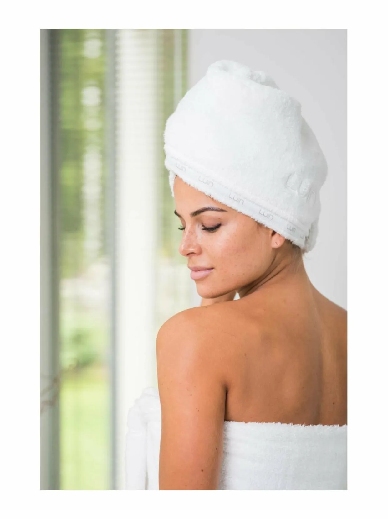 Luin Livingin ylellinen hiuspyyhe on täydellinen apulainen arkeen. Hiuspyyhe kuivaa hiukset tehokkaasti, pysyy hyvin paikallaan ainutlaatuisen nepparikiinnityksen avulla, tuntuu ihanan pehmeältä päässä ja näyttää tyylikkäältä. Tuote sopii kaikenikäisille ja kaiken pituisille hiuksille. Hiuspyyhe toimii erinomaisesti myös hiusten suojana esim. saunassa tai paljussa. Yksi koko 26 × 70 cm sopii kaikille.
