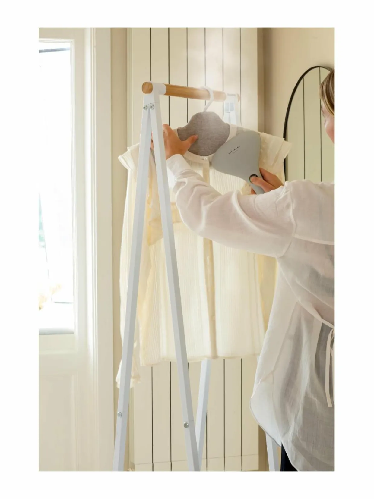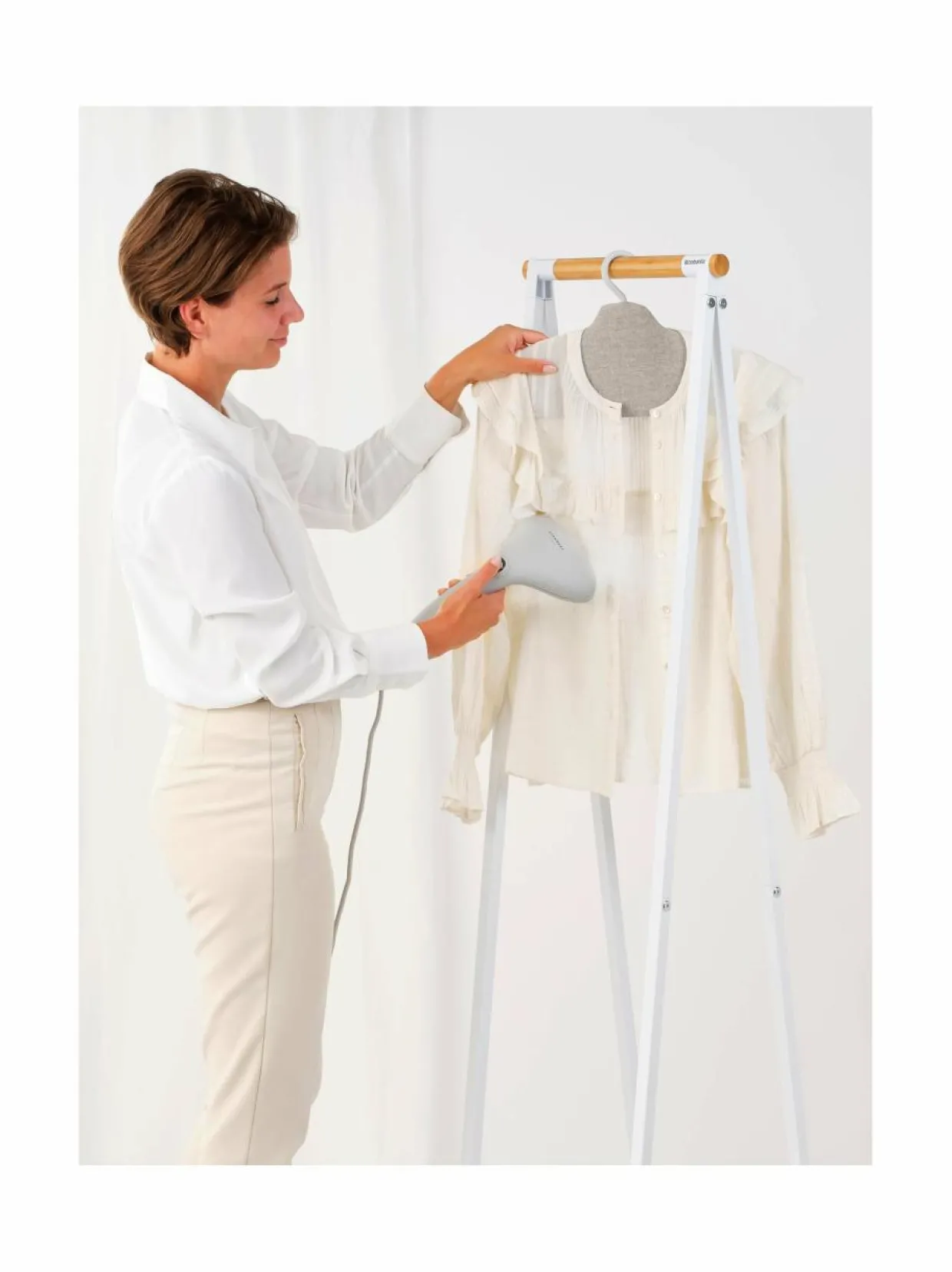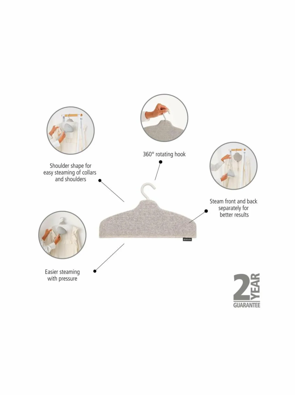 Brabantian höyrytysvaatehenkari mahdollistaa vaatteiden helpon tavan pitää tekstiilit ryhdikkäinä ja virheettöminä ilman silitystä. Höyrytysvaatehenkari tekee höyryttämisestä vaivatonta ja nopeaa. Suunniteltu käytettäväksi vaatehöyrystimen kanssa. Tämä höyrytysripustin helpottaa ja nopeuttaa haastavien kaulusten, olkapäiden sekä laskosten siistimistä huomattavasti.