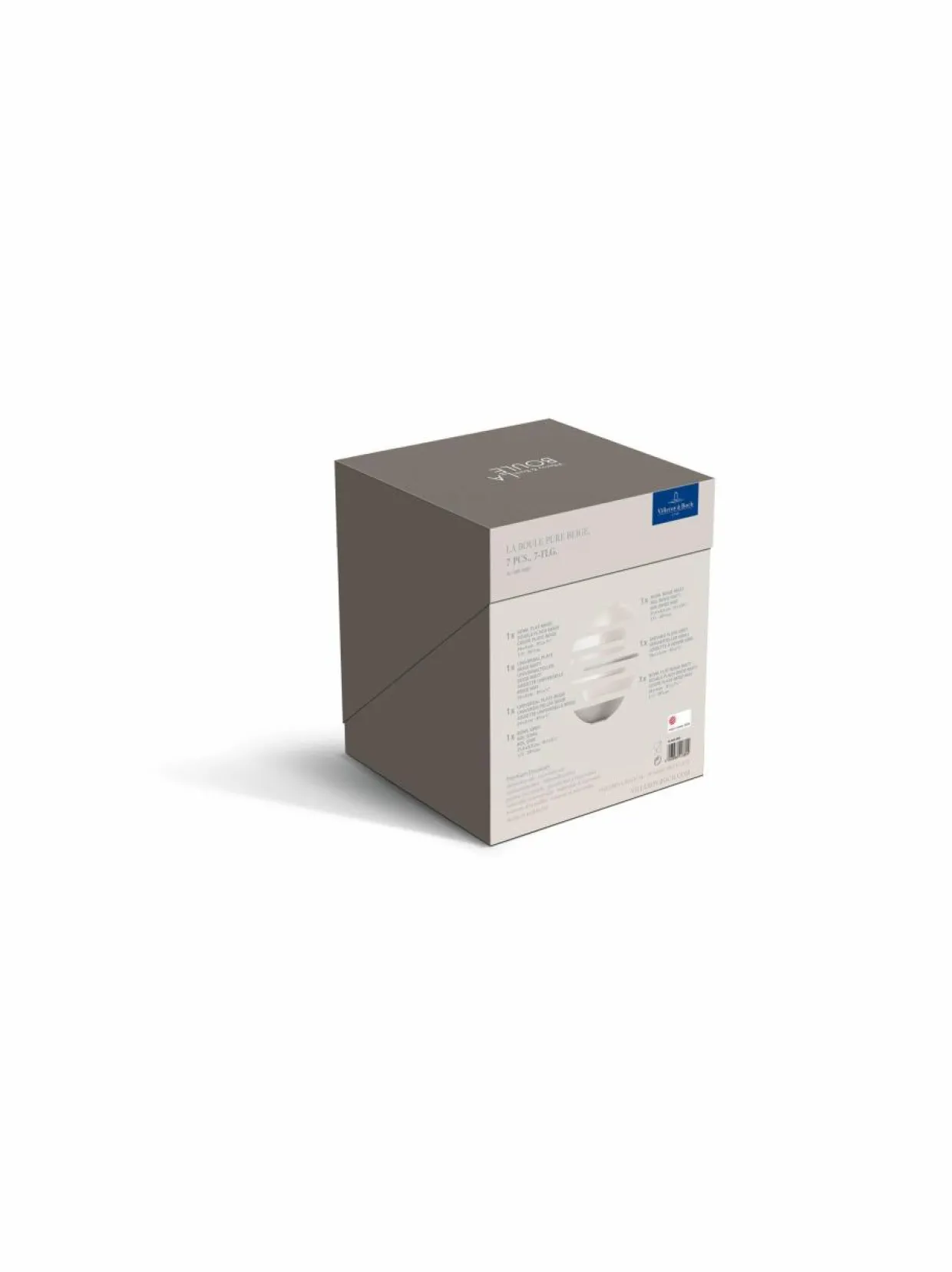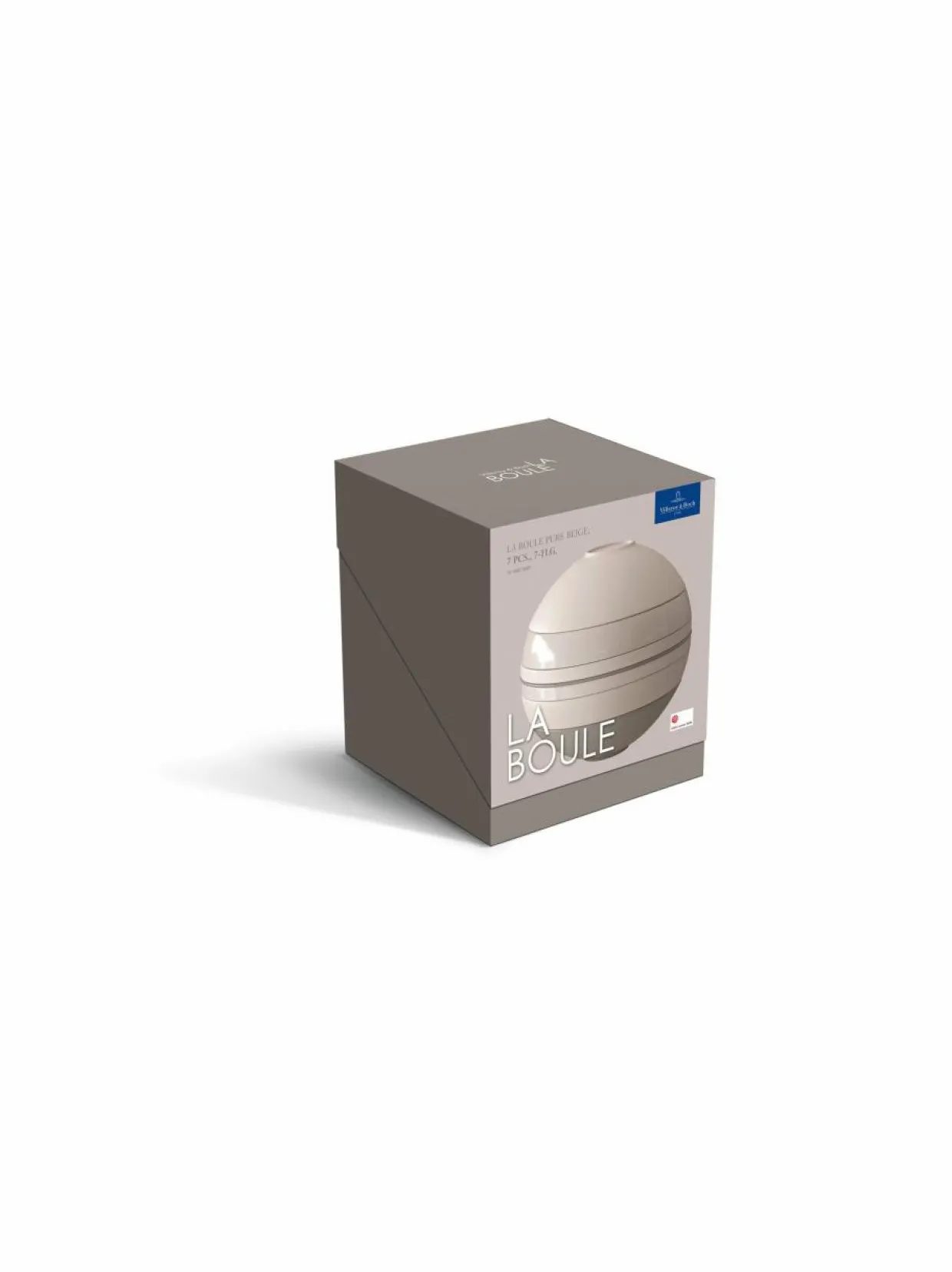 Iconic La Boule on itsessään upea design-esine. Se muodostaa pinottavan kahden hengen seitsemänosaisen astiaston (kaksi kulhoa, kaksi matalaa kulhoa, kaksi lautasta ja tarjoilulautanen).