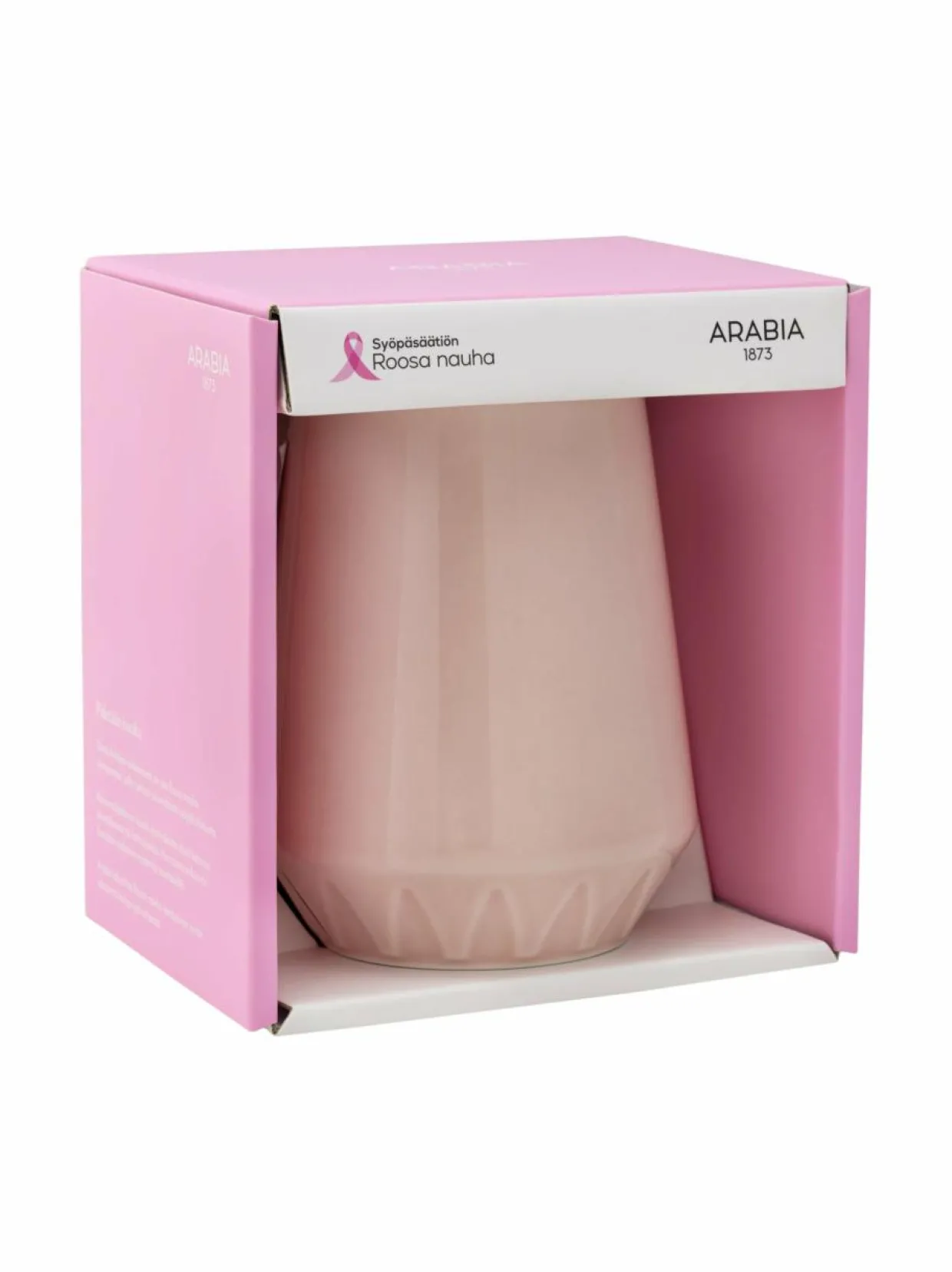 Arabia Ilona -maljakko on erikoistuote, jolla tuetaan suomalaista syöpätutkimusta. Hurmaava erikoisväri korostaa maljakon modernia muotokieltä.