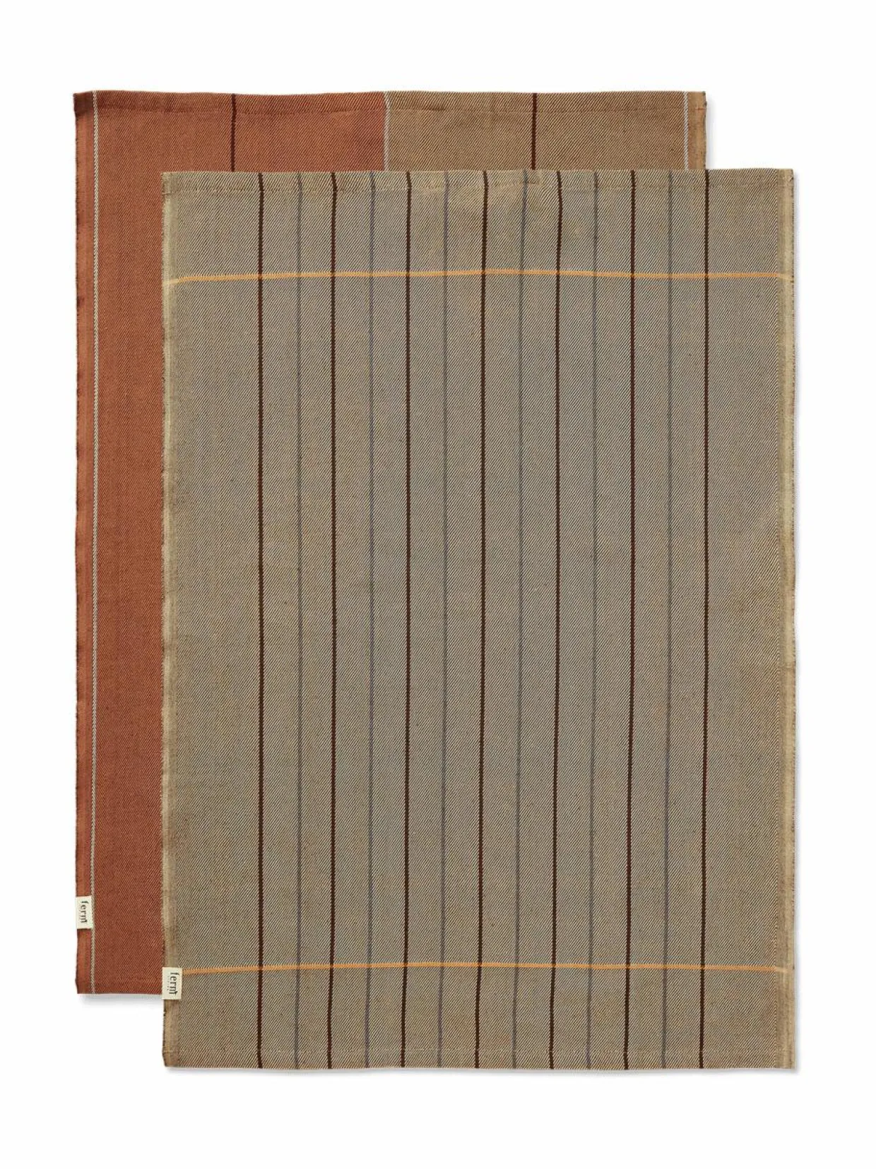 ferm LIVING merkin Ito Tea -pyyhesetti sisältää kaksi imukykyistä keittiöpyyhettä, jotka ovat molemmat GOTS-luomupuuvillatvilliä. Pyyhkeet ovat käytännöllisiä ja kestäviä, ja niissä on tyylikäs raitakuosi. Käytä Ito Tea -pyyhkeitä keittiössäsi käsien, astioiden ja pöydän tason kuivaamiseen.