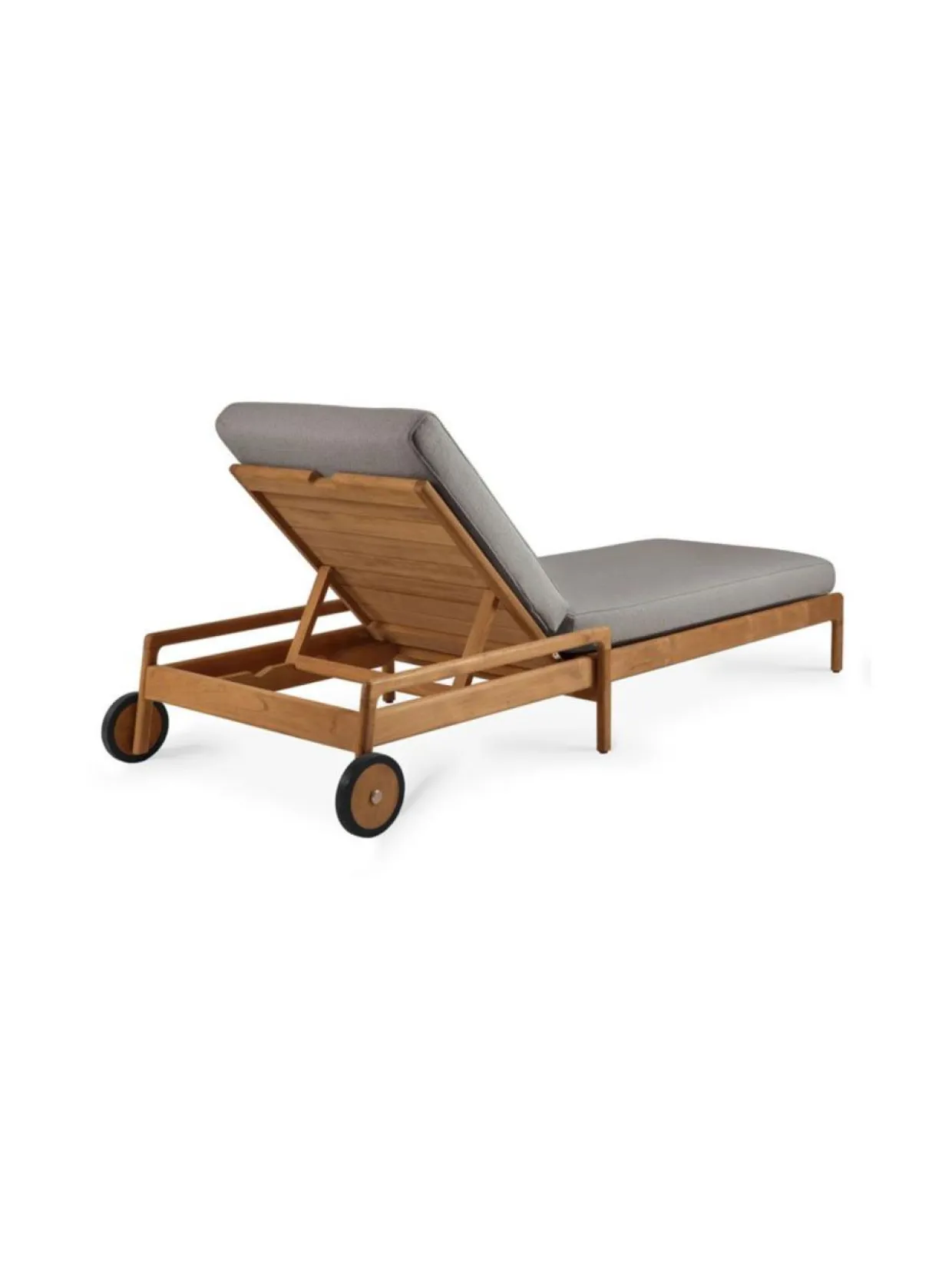 Ethnicraft-merkin Jack aurinkotuoli terassille ja ulkokäyttöön täydellisellä elegantilla, upealla muotoilukielellä pehmeästi pyöristetyillä muodoilla ja korkealaatuisella materiaalilla. Valmistettu umpitiikistä ja siinä on säädettävä selkänoja parhaan mukavuuden takaamiseksi. Tuolia on helppo siirtää isojen pyörien avulla.