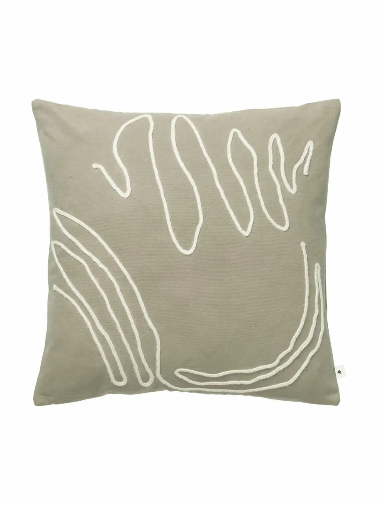 Pehmeä ja luonnollinen sisustustyyny, jonka päällinen on valmistettu 100 % luomupuuvillasta. Koristeena on käsinommeltu kontrastivärinen puuvillanyöri, joka lisää rannikkotunnelmaa. Tyynyn koko on 50 x 50 cm ja sen täytteenä on höyhen- ja untuvasekoite, joka tarjoaa mukavuutta ja tukea. Materiaali hengittää hyvin ja on kestävä.