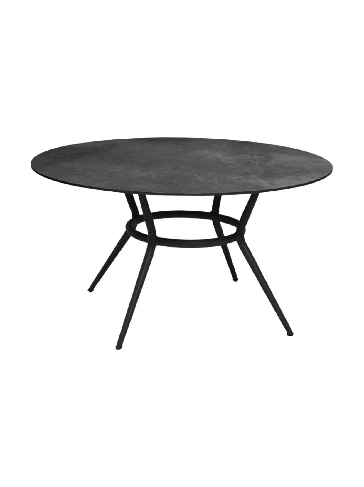 Joy-ruokapöytä ulkokäyttöön. 144 halk x 72 cm. Tumman harmaa runko, kestävää jauhemaalattua alumiinia. Tumma harmaa kuvioitu kansi korkeapainelaminaattia (HPL).