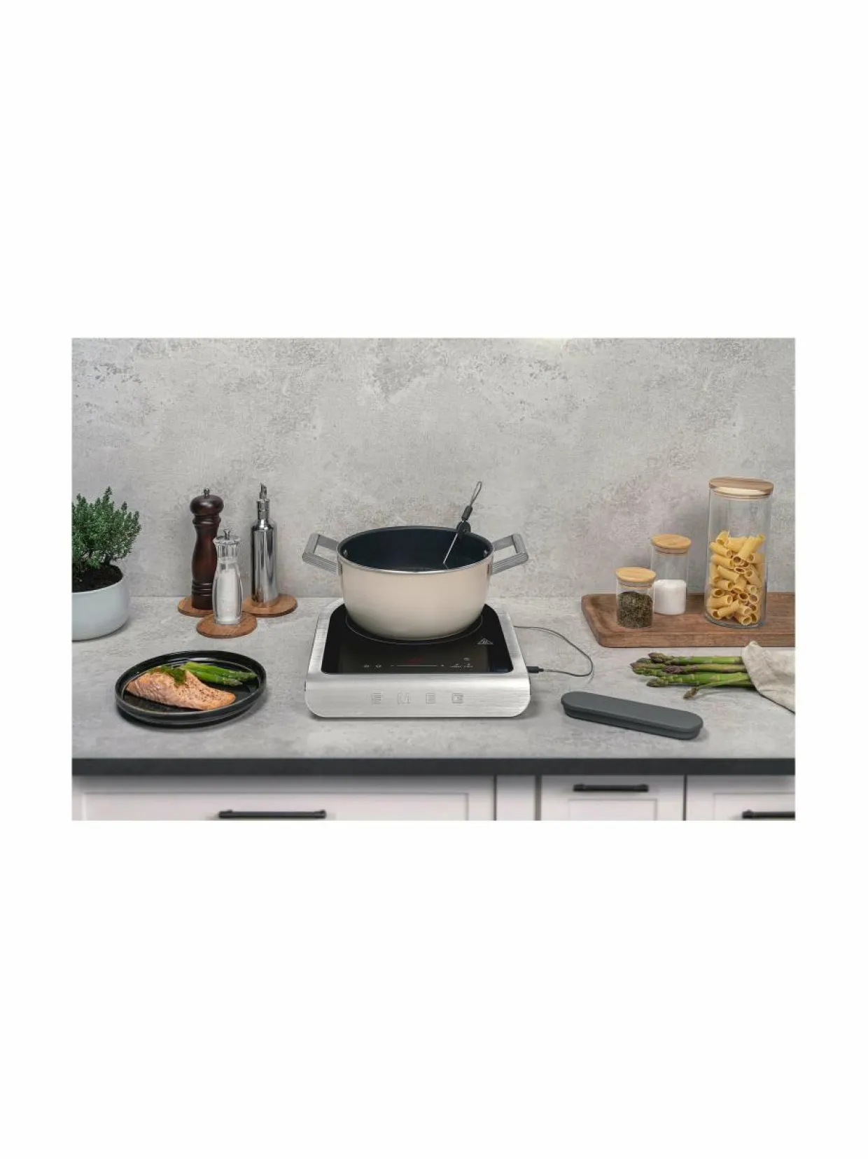 Smegin keraaminen kannettava induktioliesi lämpömittarilla on suunniteltu tarkkaan ruoanlaittoon ja ammattimaiseen valmistukseen. Keittotasolla on korkea suorituskyky lämpömittarilla tapahtuvan lämpötilan säädön ja tavoitelämpötilalle ja ajastimelle tarkoitettujen ohjelmien ansiosta, mikä takaa täydellisen kypsennyksen joka kerta. Lämpimänäpitotoiminnon avulla voit pitää ruoan halutussa lämpötilassa, jotta se on aina valmis tarjoiltavaksi, ja yhdeksän tehotason avulla voit säätää lämpöä tarkasti tarpeen mukaan, kun taas Boost-toiminto tarjoaa lisätehoa nopeaan ja tehokkaaseen ruoanvalmistukseen. Tässä induktiokeittolevyssä yhdistyvät edistyksellinen tekniikka ja helppokäyttöisyys, joten se on ihanteellinen valinta niin kotikokille kuin ammattilaisillekin. Kannettavan rakenteen ansiosta voit ottaa sen mukaasi ja nauttia sen eduista missä ikinä valmistatkin ruokaa.