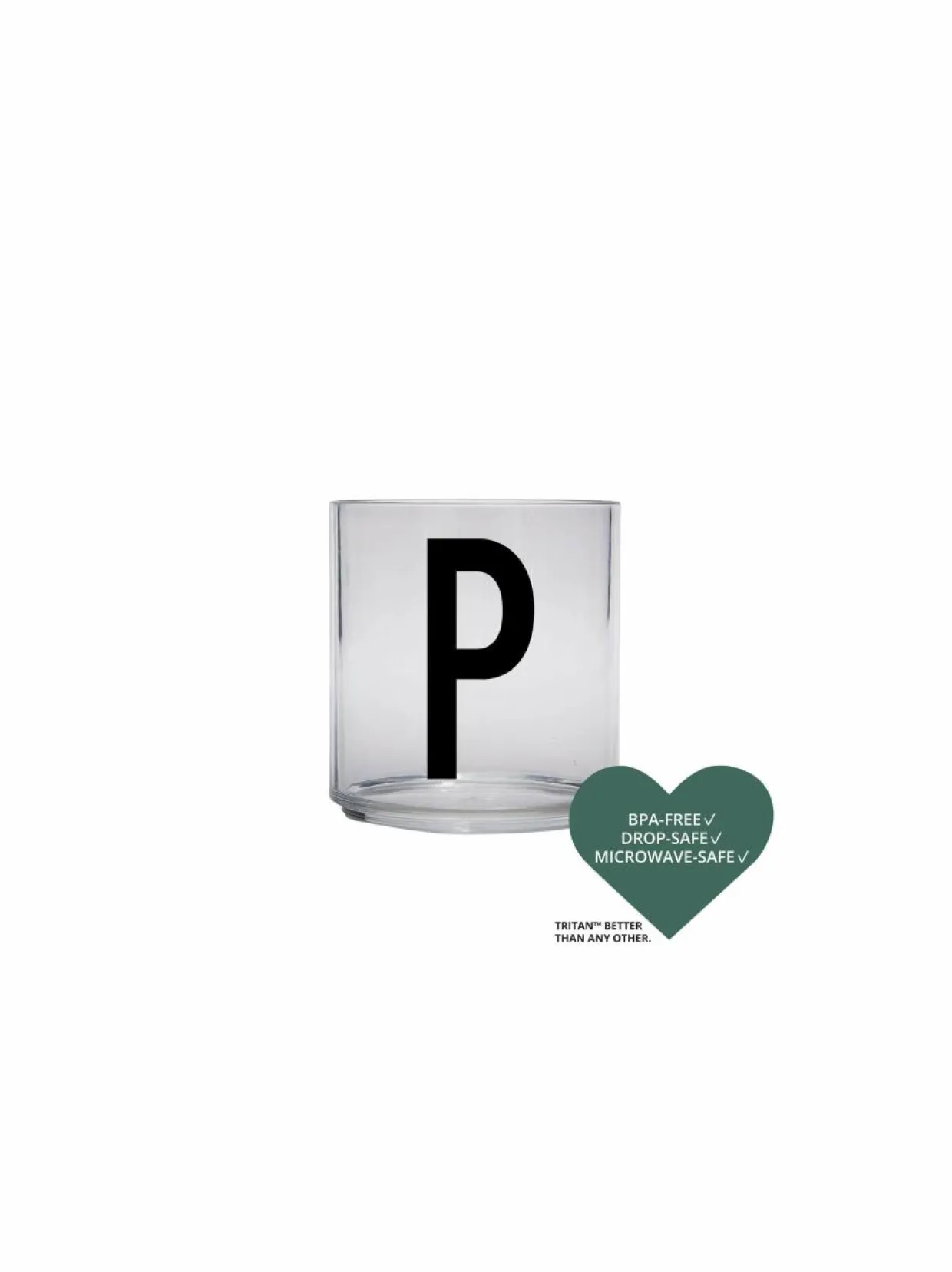 Design Lettersin lasten juomalasia koristavan yksinkertaisen tyylikkään typografian on suunnitellut Arne Jacobsen. Lasi on valmistettu kestävästä Tritan-muovista, joka ei sisällä myrkyllisiä kemikaaleja. Mikronkestävän lasin voi pestä astianpesukoneessa. Halkaisija on 6,5 cm ja korkeus 7,2 cm.