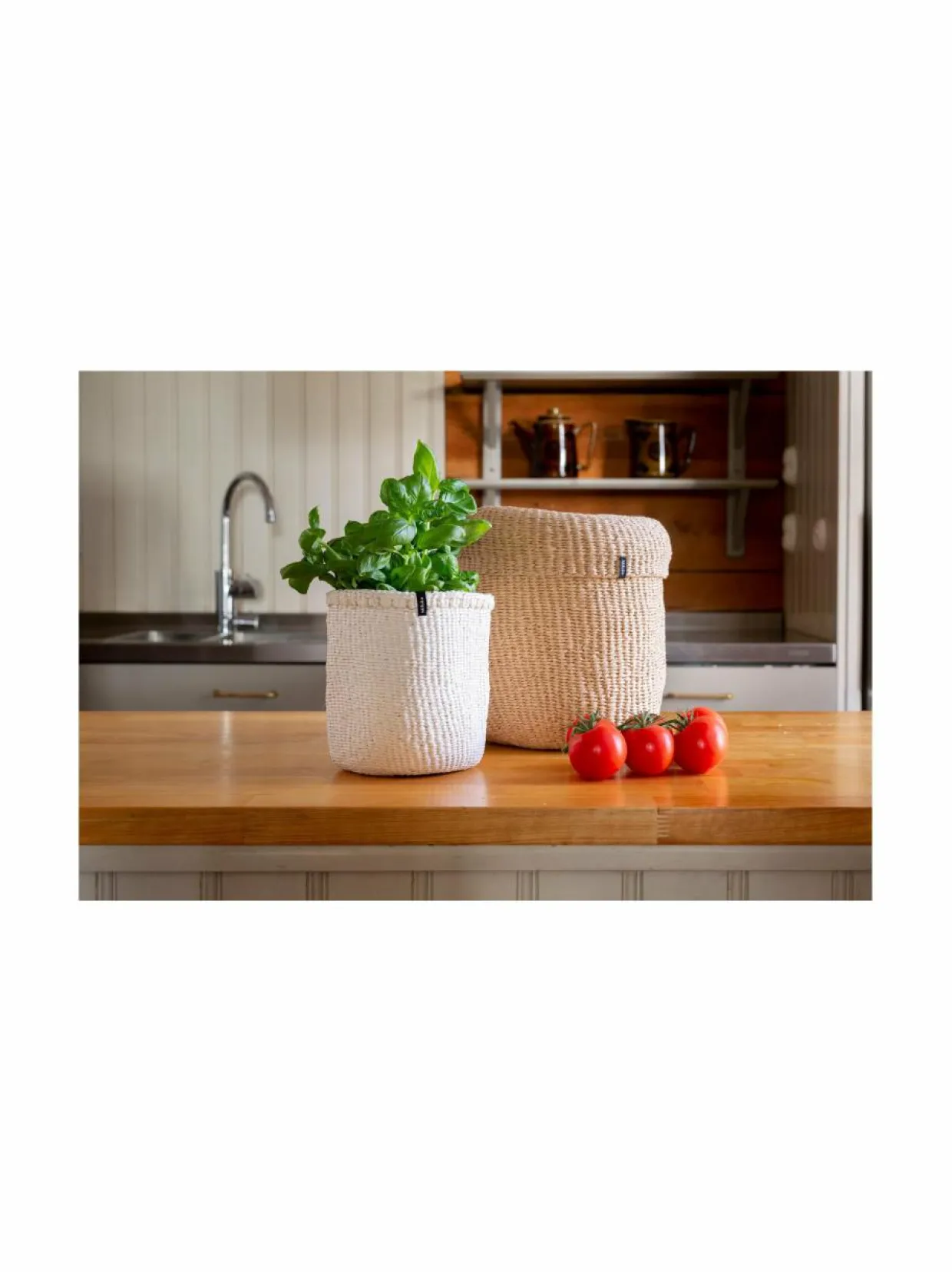 Lisää kotiisi tyyliä näillä kauniilla ja monikäyttöisillä koreilla. Ne ovat ihanteellisia hedelmien, vihannesten ja välipalojen sekä arkisten tavaroiden, kuten lelujen, kynien, kosmetiikkatuotteiden ja latureiden säilytykseen. Voit myös luoda uuden ilmeen kasveillesi sujauttamalla ruukut korien sisään. Nämä tuotteet on punottu käsin kestävästä muovista, joten ne ovat pitkäikäisiä ja soveltuvat ulkokäyttöön. Materiaali on kierrätettyä sisalia ja muovinauhaa.