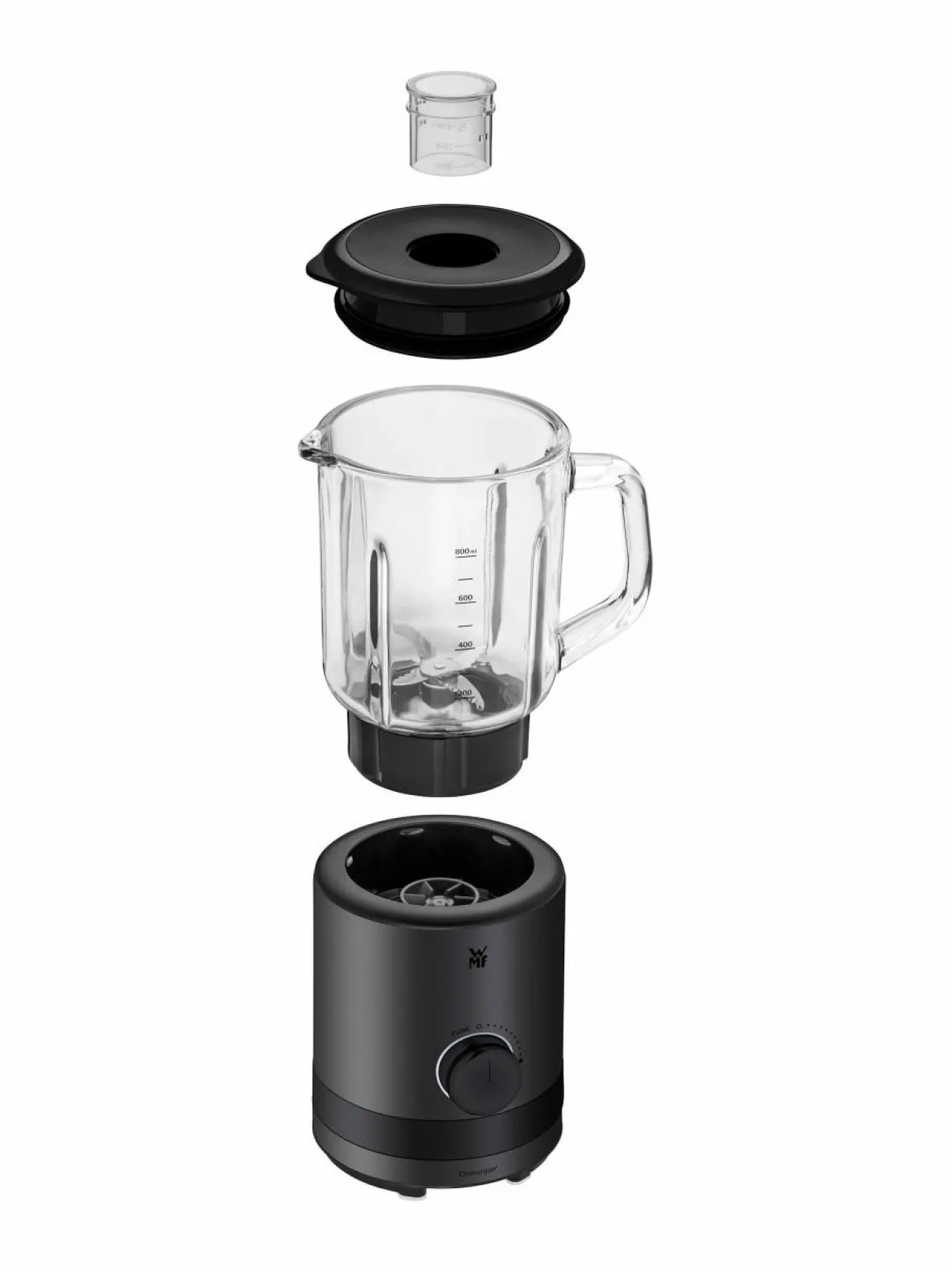 WMF KITCHENminis -tehosekoitin on valmistettu korkealaatuisesta, ruostumattomasta Cromargan-teräksestä ja moottoriosan ulkopinta on viimeistelty mattamaiseksi, luoden sekä modernia että ajatonta eleganssia ympärilleen. Tämä yhdistelmä tekee WMF-tehosekoittimesta paitsi kestävän, myös visuaalisesti tyylikkään. Kompakti WMF KITCHENminis -tehosekoitin tekee vaikutuksen tehokkaalla moottorillaan: 400 wattia, 20 000 kierrosta/min, 241 km/h. Viiden nopeusasetuksen ansiosta jokaiseen tarpeeseen löytyy sopiva nopeus. Käytössä on myös sykäystoiminto lyhytaikaiseen sekoitukseen. Tehosekoitin sekoittaa nopeasti mm. terveelliset juomat, smoothiet, kastikkeet, pirtelöt ja vauvanruoan sekä murskaa jääpalat. WMF Perfect Cut -teknologia ja ruostumatonta terästä oleva, 6-siipinen terä takaavat täydellisen sekoitustuloksen. Irrotettavassa 0,8 litran lasikannussa on käytännöllinen kansi, jossa on täyttöaukko. Pohjassa olevat kumitassut varmistavat, että tehosekoitin pysyy turvallisesti ja tukevasti paikallaan.