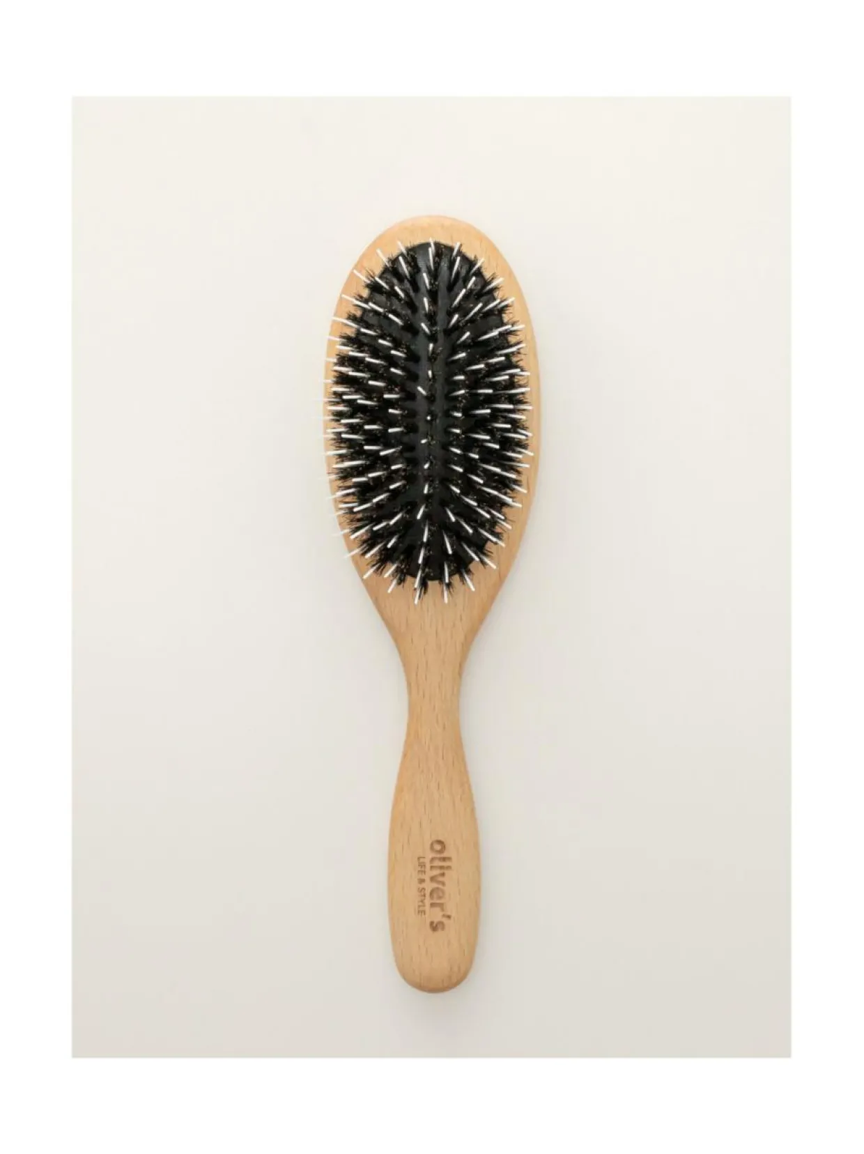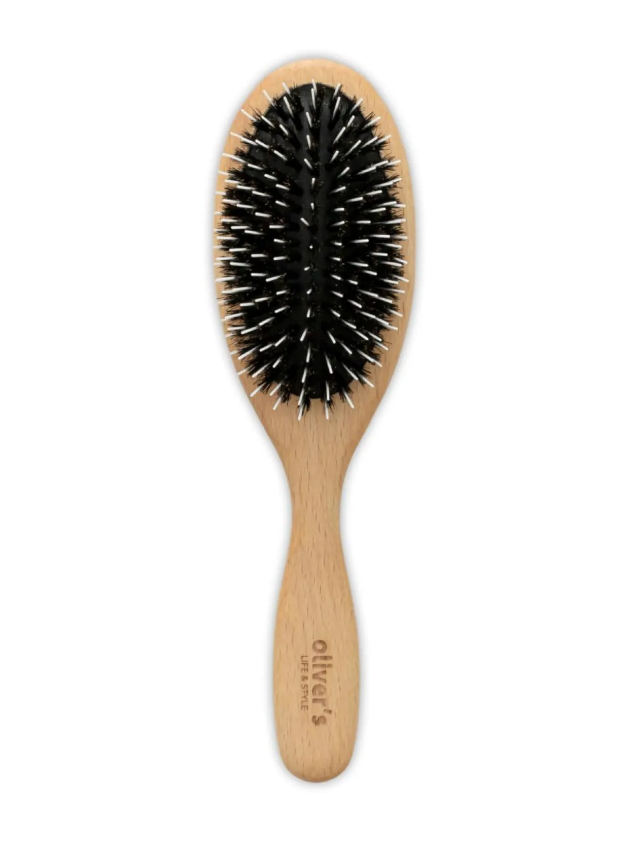 Oliver’s Life & Style koiran sekoiteharja on laadukas harja vaativimmillekin turkeille. Se sopii etenkin pitkille turkeille ja toimii myös loistavasti apuna takkujen selvityksessä sekä ehkäisee uusien takkujen syntymistä. Samalla kun pidemmät nylonharjakset selvittävät hellävaraisesti turkkia, villisian harjakset kiillottavat sitä. Harjan muotoilussa on otettu ergonomia huomioon, joten se on kevyt ja mukava käyttää. Harjan runko-osa on öljyttyä pyökkiä. Harjasosa on valmistettu villisian harjaksista ja nylonista. Valmistettu vastuullisesti käsityönä Saksassa.
