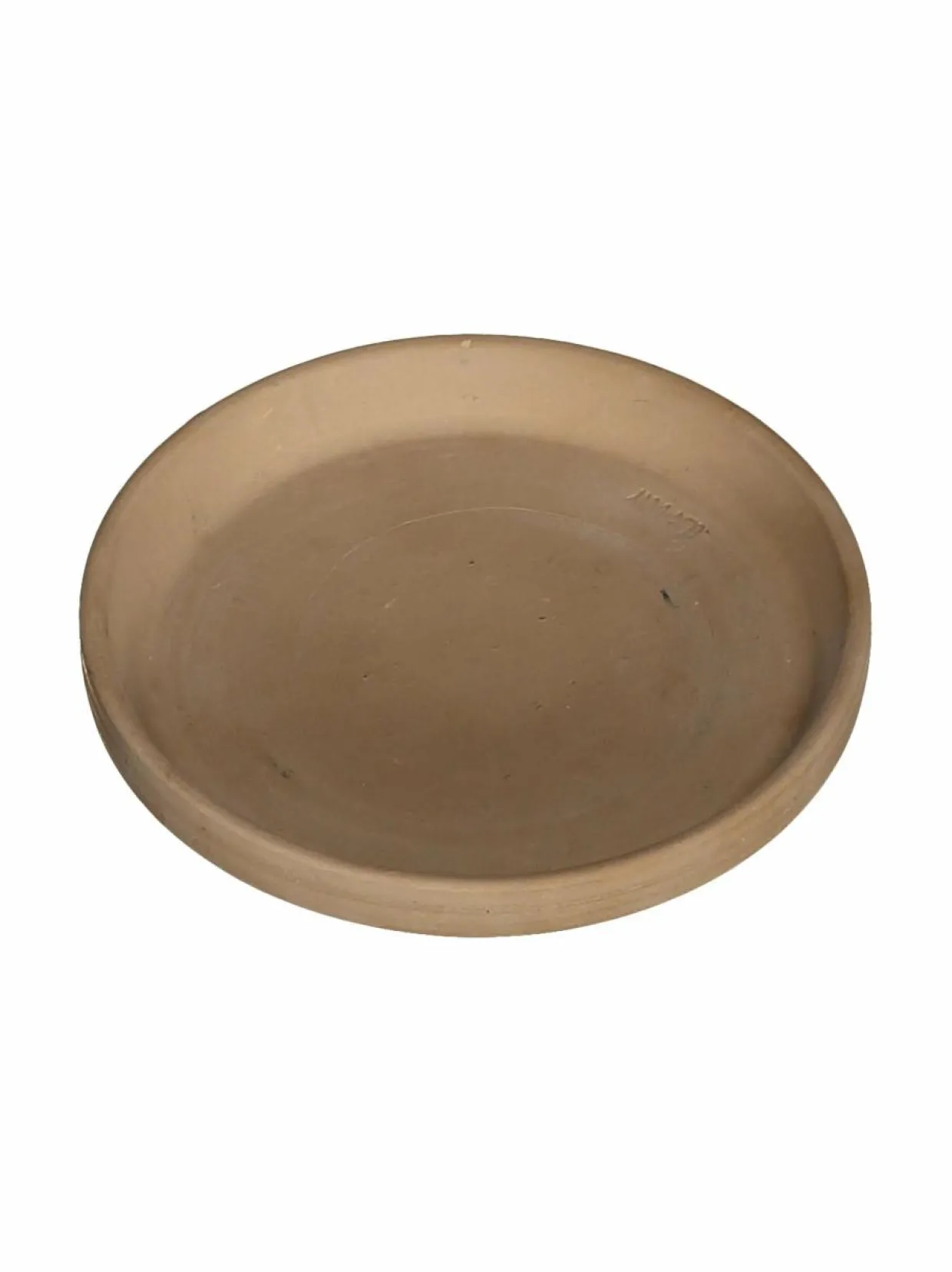 Kukkaruukun aluslautanen luonnonläheisellä tyylillä. Valmistettu terracotta-keramiikasta.
