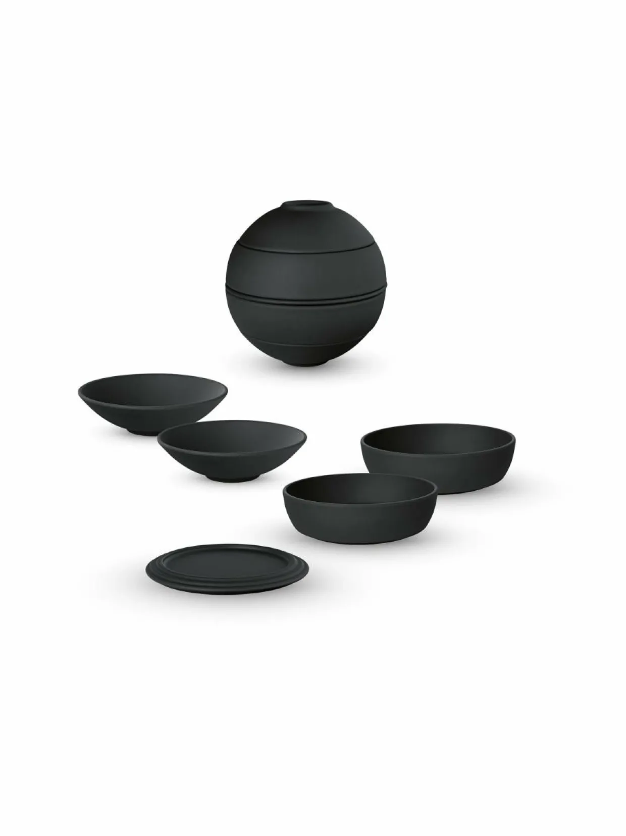 La Petite Boule -tarjoilusetti on pienempi versio alkuperäisestä La Boule -astiasarjasta, jossa yhdistyy keraaminen osaaminen ja ikoninen muotoilu. Setissä on tilaa säästävä, pinottava muotoilu huomiota herättävällä ulkonäöllä. La Petite Boule on loistava muotoiluesine keräilijöille, mutta myös täydellinen valinta lahjatuotteena. Se koostuu viidestä eri osasta, mukaan lukien neljä kulhoa ja keskilautanen, joilta tarjoilet pientä purtavaa vieraillesi.