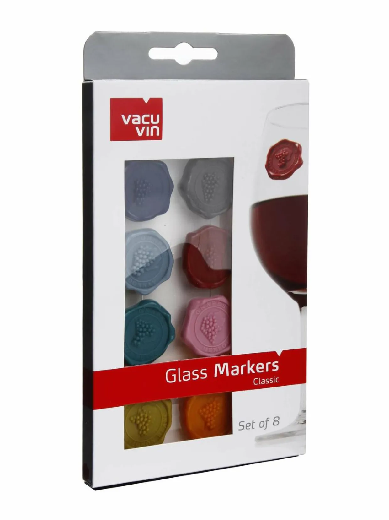 Sinetöi viinilasisi henkilökohtaisella silikonisella lasiin tarttuvalla lasimerkillä. Tyylikkäät lasimerkit ovat uudelleenkäytettäviä ja konepestäviä. Pakkauksessa on kahdeksan sinetinmallista merkkiä.