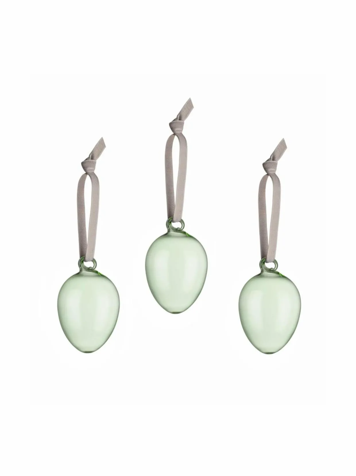 Iittalan lasimunasetti lisää leikkisyyttä mihin tahansa sisustukseen. Kangasnauhasta ripustettavien lasikoristeiden pehmeä sävy heijastaa valoa kauniisti. Kolmen kappaleen paketteina myytävät lasimunat ihastuttavat kodin juhlapöydässä tai ovat mukava tuliainen pääsiäisvierailulla.