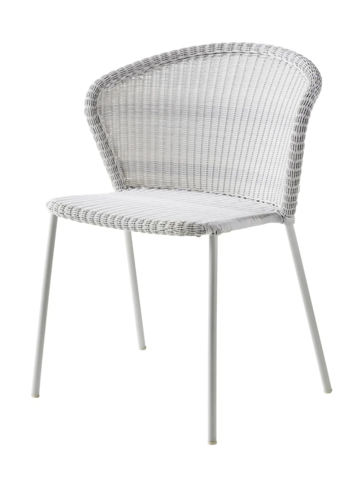 Lean-tuoli ulkokäyttöön, pinottava. 59 cm lev, 59 syv, 80 kork, 46,5 istuinkork. Istuintyyny sisältyy hintaan, harmaa Cane-Line Natté. Valko-harmaa Cane-line Weave® -punosmateriaali, alumiinirunko.