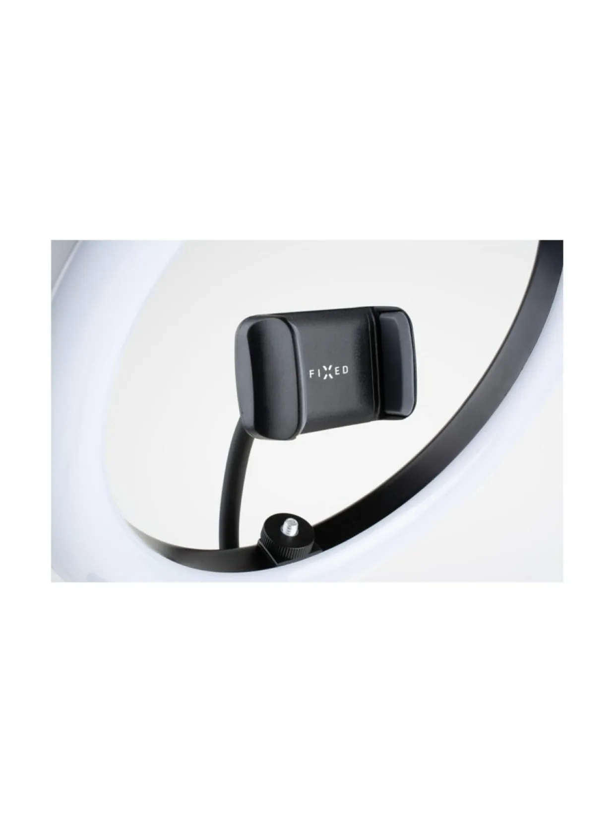 FIXED LED-Ring -yleisjalusta pyöreällä valaistuksella on ammattimainen lisävaruste videokuvaukseen, suoratoistoon ja valokuvaukseen. Yhdessä puhelimen, tabletin, kameran tai toimintakameran kanssa kolmijalka luo pienen kuvausstudion suoraan kotiisi.